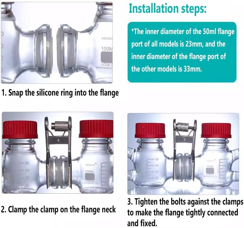 ➤Secure Flange Connection: The flange neck is reinforced with a clamp and bolt, ensuring a tight and stable seal. Easy to assemble by inserting the silicone ring and tightening the bolts. Both flange ports feature a 33mm inner diameter for versatile access.