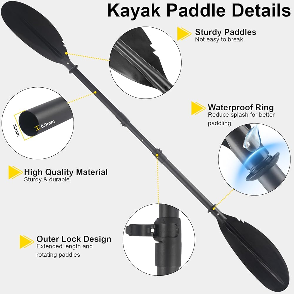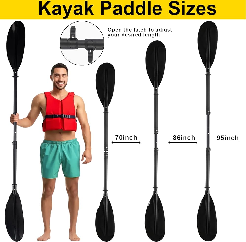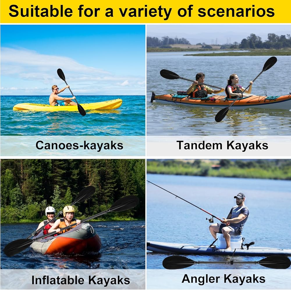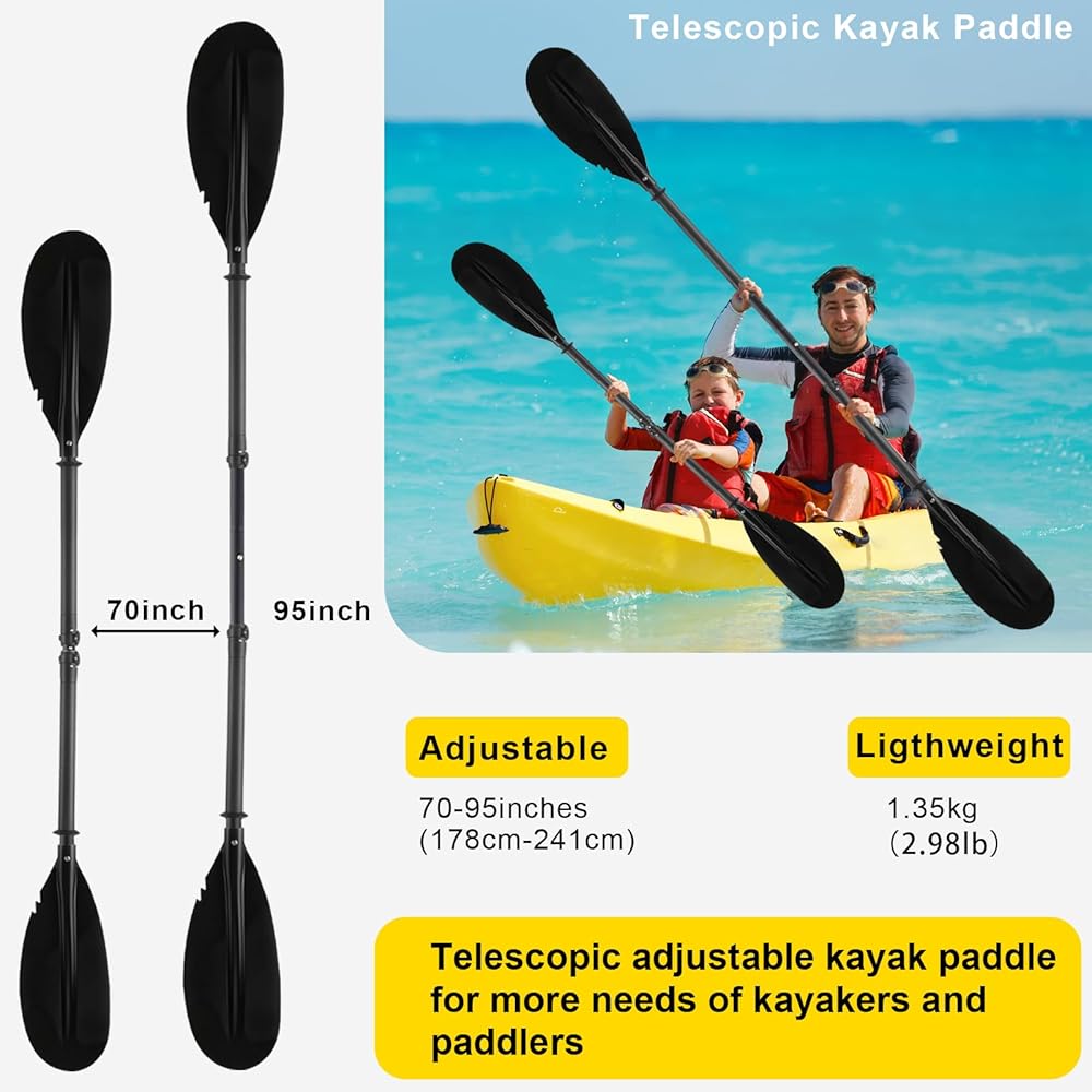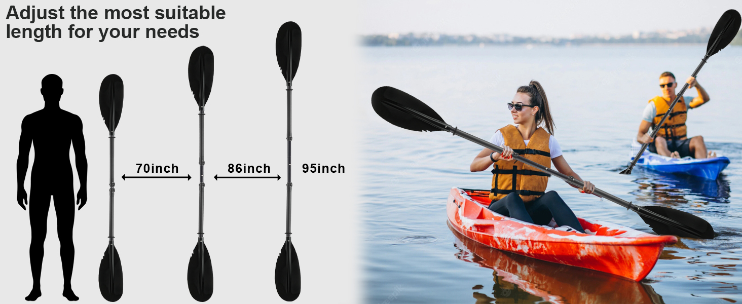 مجداف الكاياك التليسكوبي: يمكن تلسكوب مجداف القارب الخاص بنا من 70 بوصة إلى 95 بوصة، قم بلف وضع القفل وفقًا لاحتياجاتك للسحب إلى حجم مُرضي. بالإضافة إلى ذلك، من أجل الحفاظ على مجداف الكاياك القابل للتعديل من التلف أثناء النقل، نستخدم تصميم الوصلة، يمكنك تقسيمه إلى 4 أجزاء، وهو مناسب لك للحمل والتخزين. إذا واجهت أي مشكلة في عدم تمكنك من تركيب مجداف الكاياك المتداخل، فيرجى الاتصال بنا في الوقت المناسب