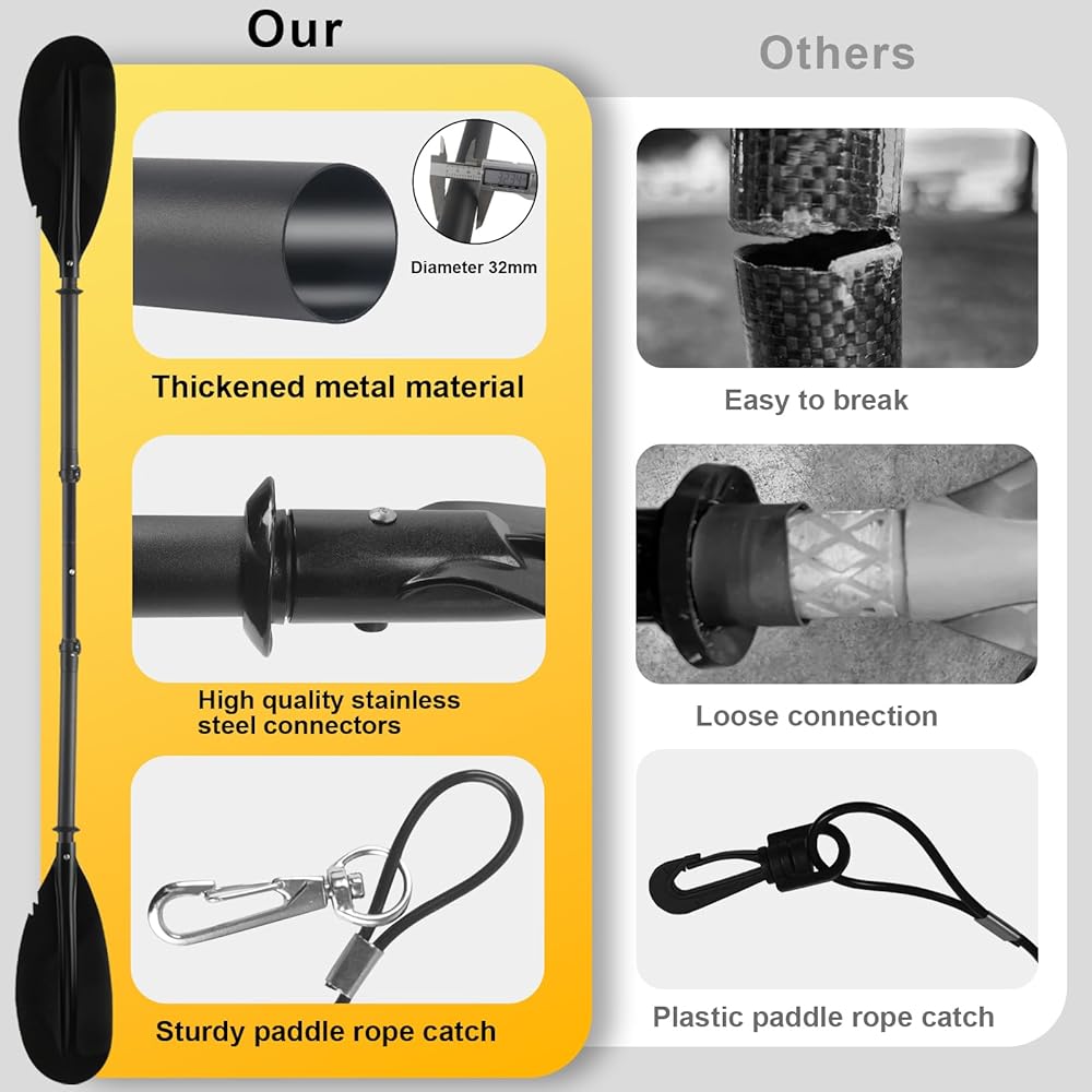 زمام مجداف الكاياك المرن: مجداف الكاياك المتداخل مجهز بحبل مجداف الكاياك، قوي ومرن بما يكفي لمساعدتك على تثبيت المجداف على الكاياك، لم يعد القلق بشأن سقوط المجداف في الماء.