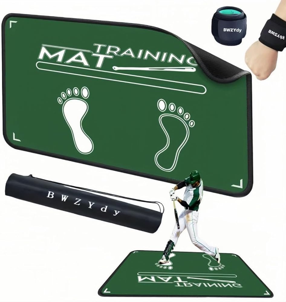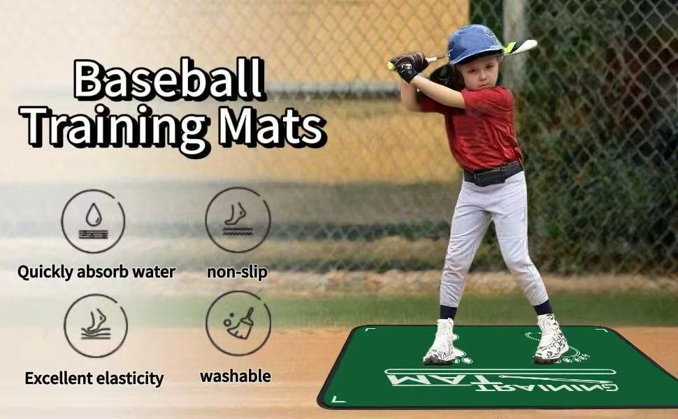 بساط ضرب البيسبول 2 في 1 وبساط زخرفي/مدخل، بساط ضرب الكرة اللينة مع لوحة منزلية، مضاد للانزلاق، دليل موقف الضرب للتدريب على التأرجح، استخدام داخلي/خارجي متين (35.4 بوصة × 23.6 بوصة)