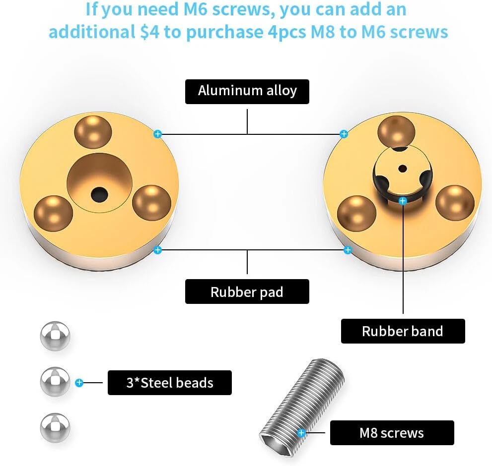 - 4PCS Aluminium Speaker Isolation Stand Feet Turntable DAC Base Pad Nail M8 Screw