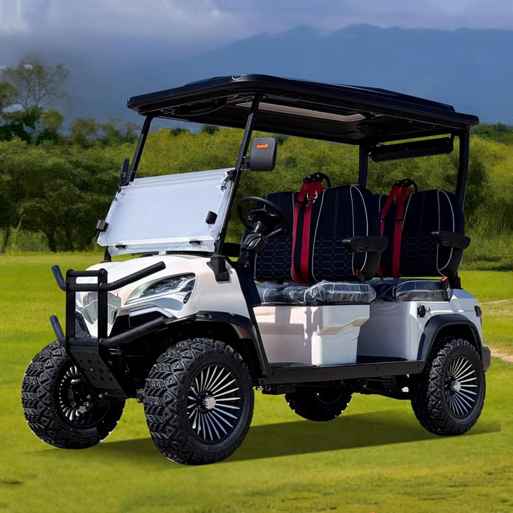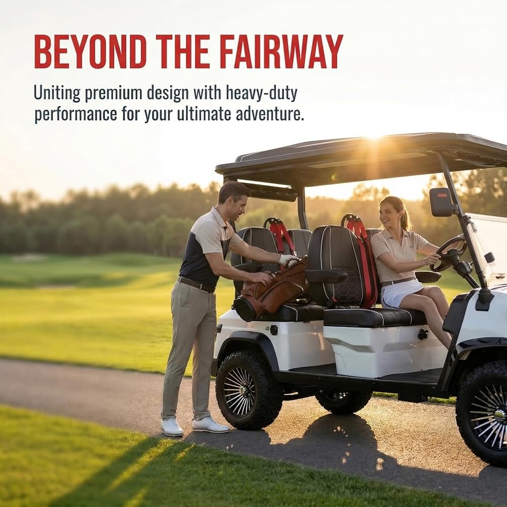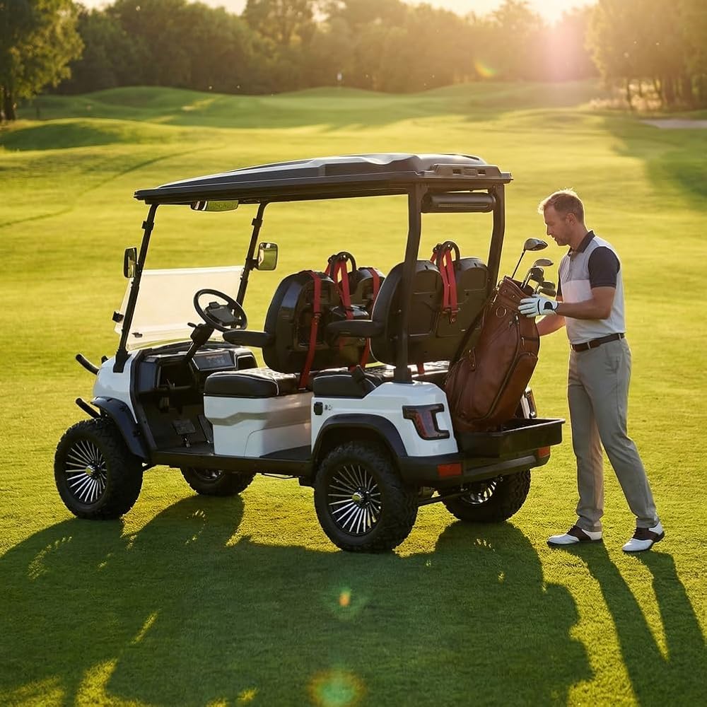 - This 4-seater golf cart is ideal for golf enthusiasts, allowing you to share joyful moments with family and friends. The spacious and comfortable seating ensures everyone can enjoy their swing.