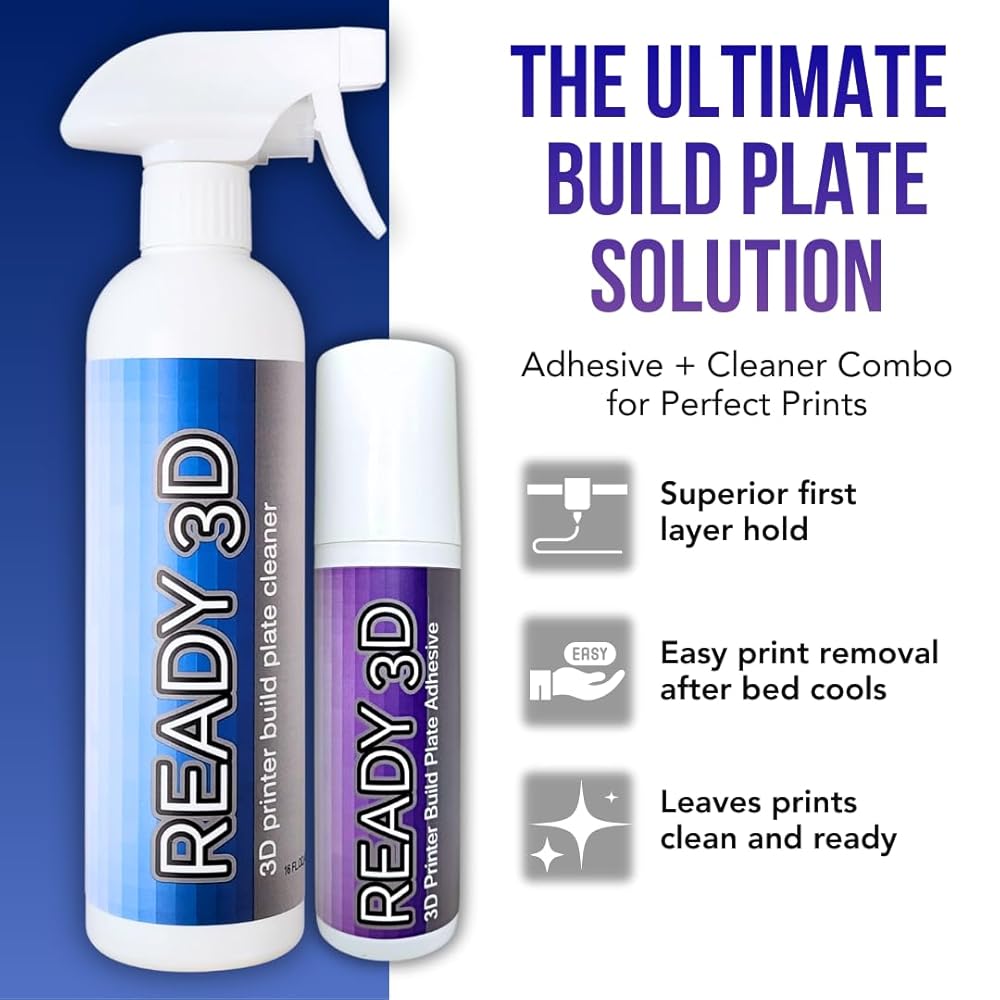 غراء لاصق للوحة البناء 3.38 أونصة للطابعة ثلاثية الأبعاد ومنظف لوحة البناء 16 أونصة - طبقات أولى ممتازة، إصدار طباعة سهل، تركيبة من الدرجة الممتازة، صنع في الولايات المتحدة الأمريكية، آمن PLA/ABS/PETG/TPU، غير سام، بدون رائحة