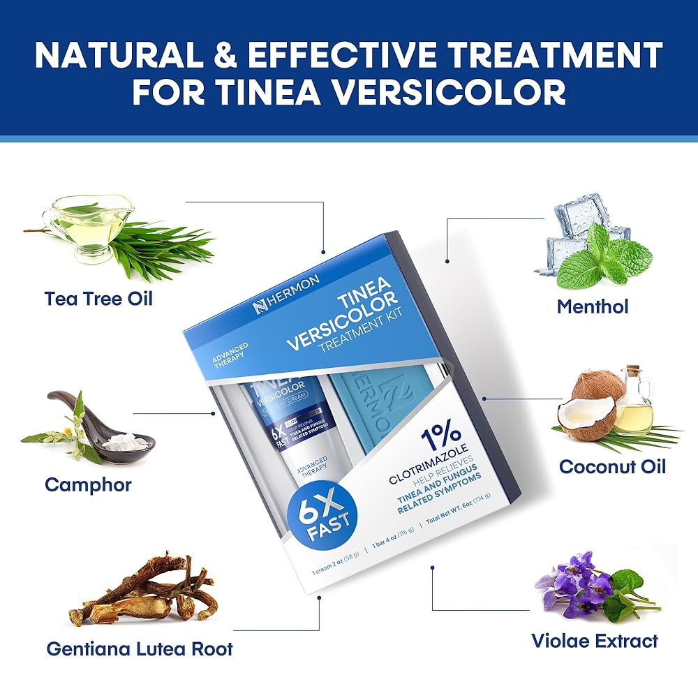 Natural & Effective Treatment for Tinea Versicolor: This kit offers an effective solution for tinea versicolor and other fungal skin infections, using natural ingredients to promote healthy skin.