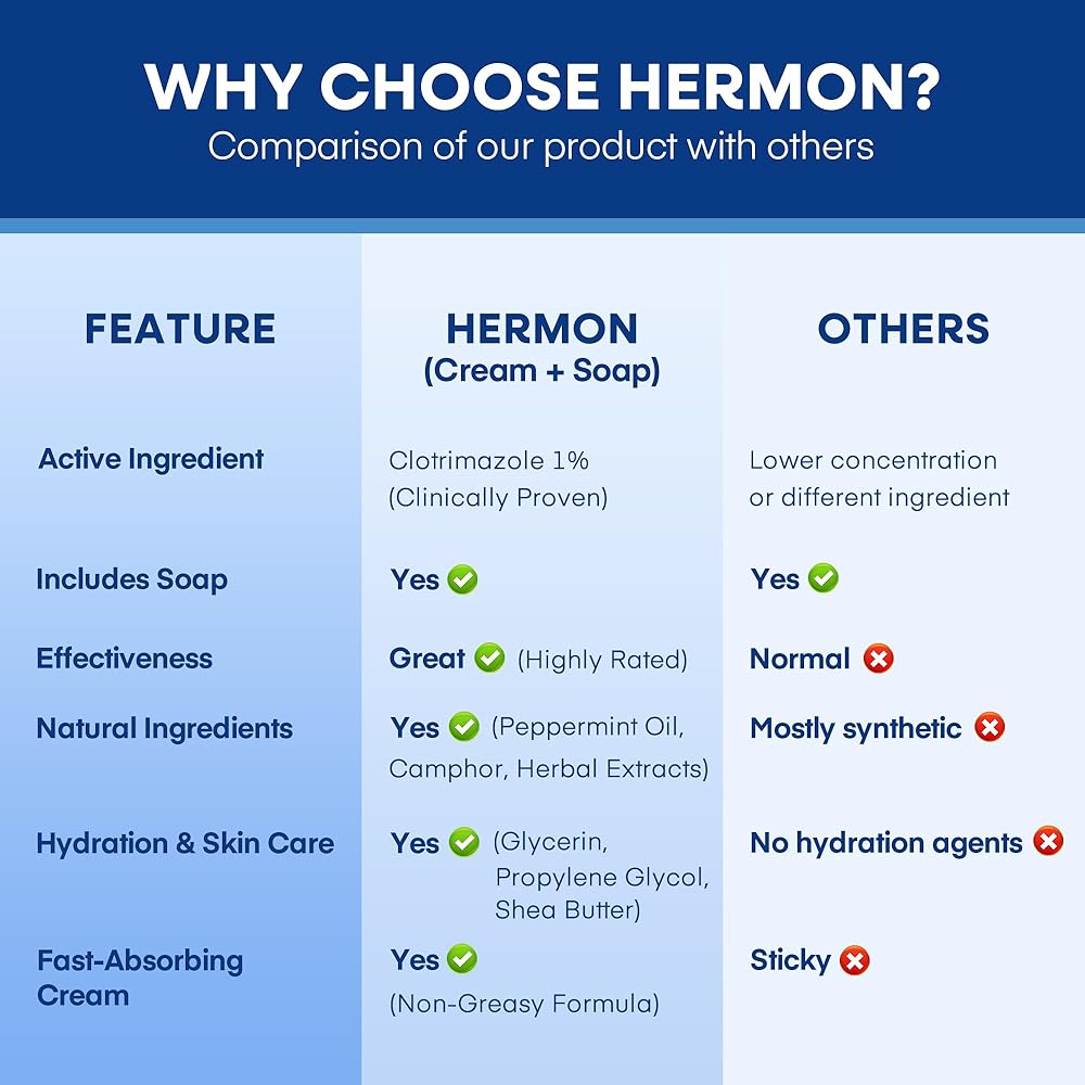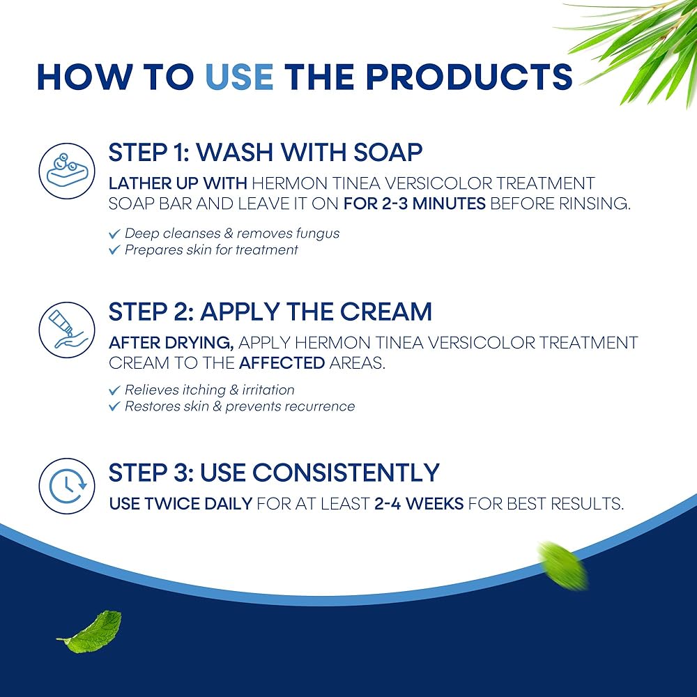 Powerful & Fast-Acting: The Hermon Tinea Versicolor Treatment Kit is formulated to provide powerful and fast-acting results, helping to reduce itching, redness, and irritation quickly, with noticeable improvements in just a few applications.