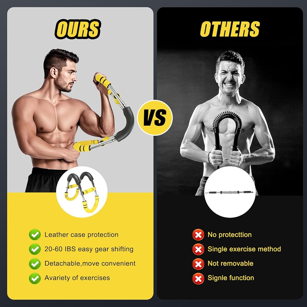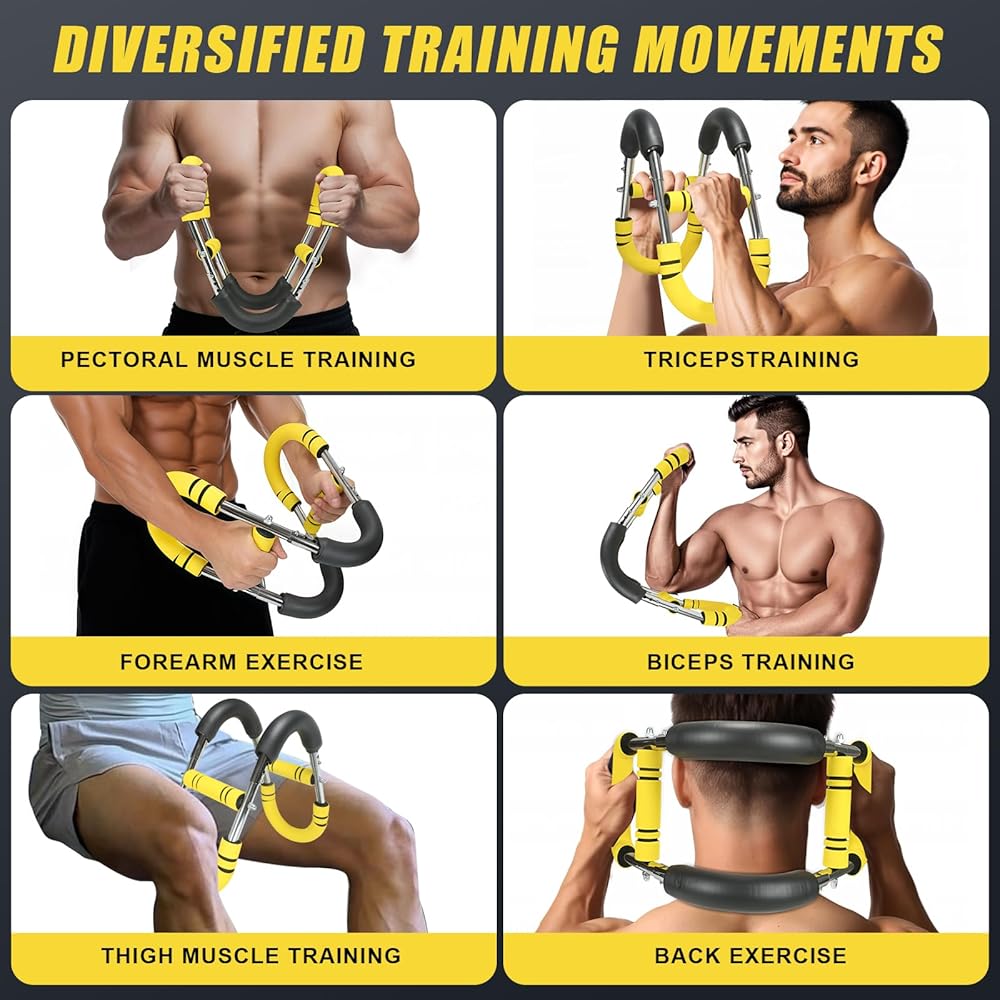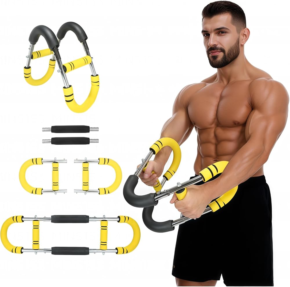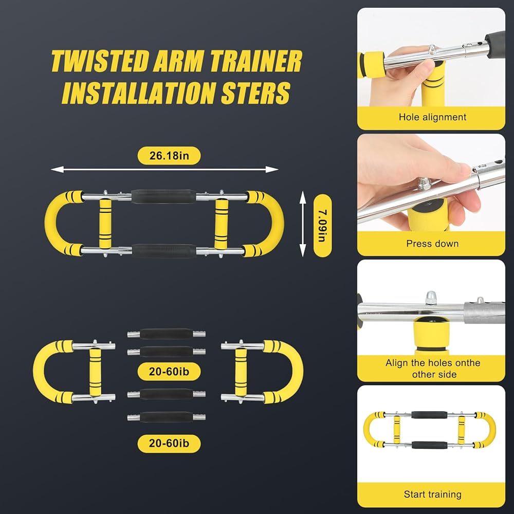 مدرب الذراع تويستر، معدات تمرين الصدر القابلة للتعديل للرجال والنساء، مدرب القوة في صالة الألعاب الرياضية المنزلية، بناء العضلات وتدريب القوة للذراعين والصدر (أصفر، 40-60 رطل)