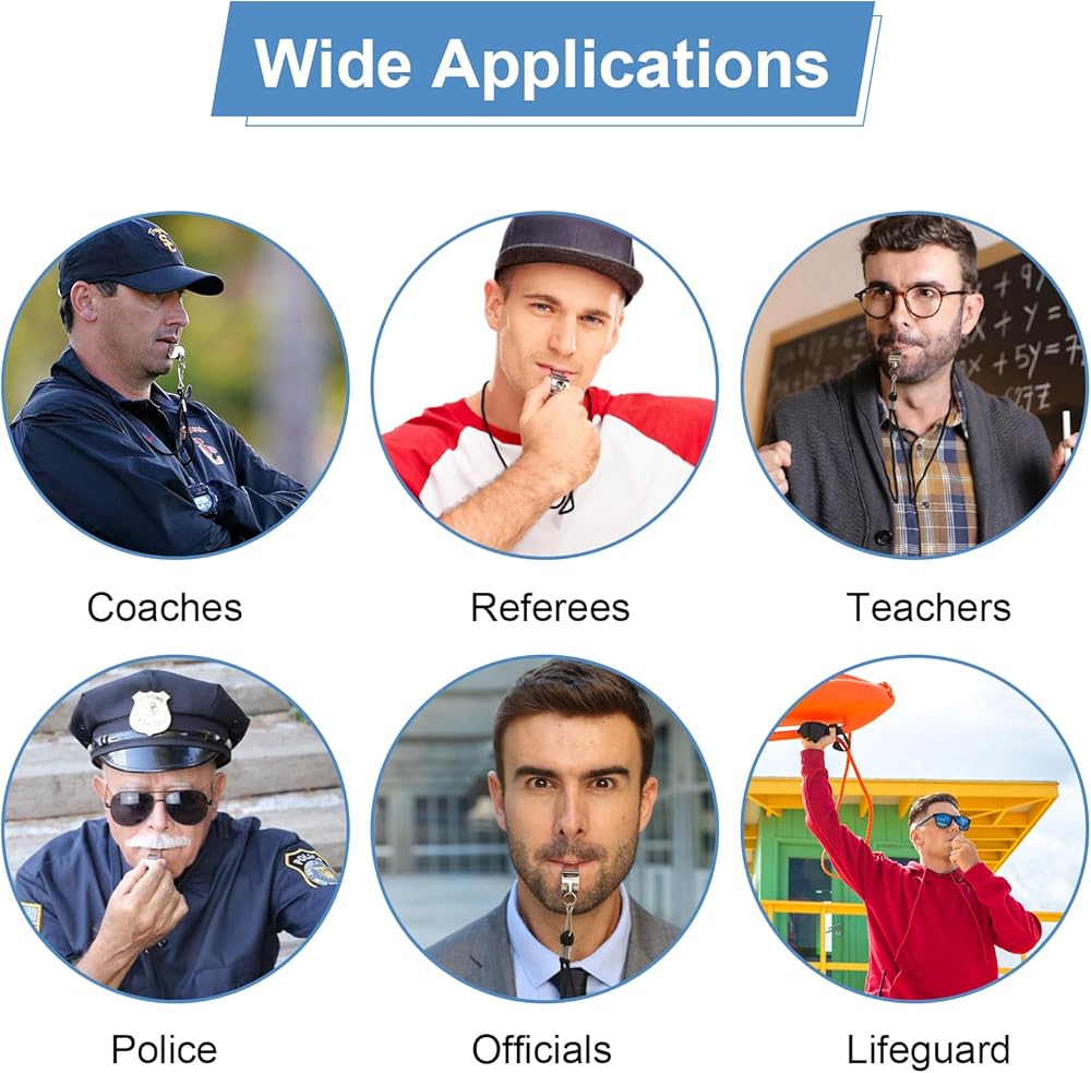 تطبيقات واسعة: يمكن استخدام صافرة المدرب الخاصة بنا في العديد من جلسات التدريب التنافسية، ومباريات كرة القدم، وتدريب الحيوانات الأليفة، وحالات الطوارئ، والتحكم في حركة المرور، والأنشطة السياحية، والمشي لمسافات طويلة، والتعليم التعليمي، والتشجيع في الأحداث الرياضية. كما أنها مناسبة للمدربين والحكام والمعلمين وضباط الشرطة ورجال الإنقاذ والمسؤولين والمجموعات المماثلة