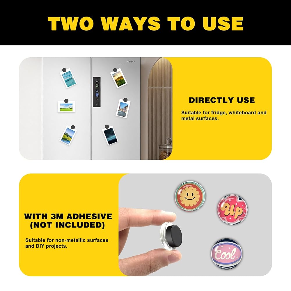 Easy to Use: Our ferrite magnets can be directly used as fridge magnets to hold papers and notes, or use another 3M adhesive or glue to DIY. Suitable for both metal and non-metal surfaces. Note: 3M adhesive is not included.