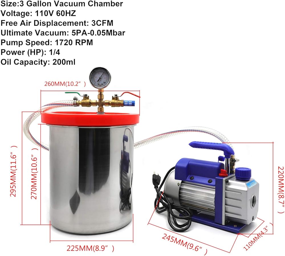 3 CFM Vacuum Pump + 3 Gallon Vacuum Chamber
