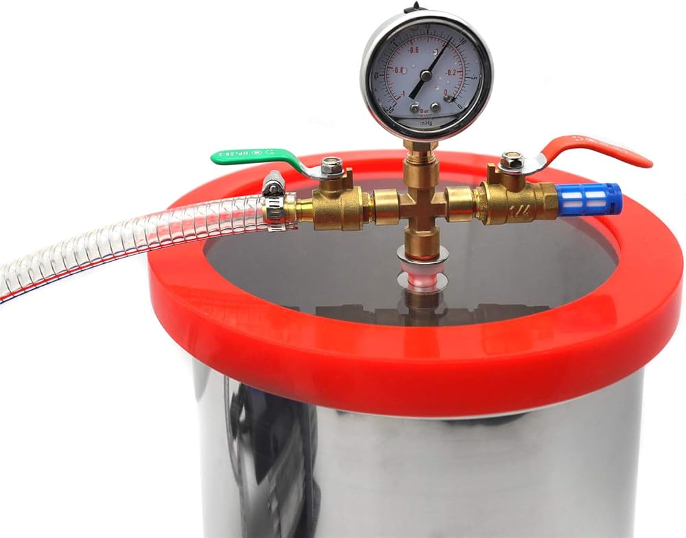 3 Gallon Vacuum Chamber kit used to degass urethane, silicones, epoxies, extracting essential oils from organic materials, etc.