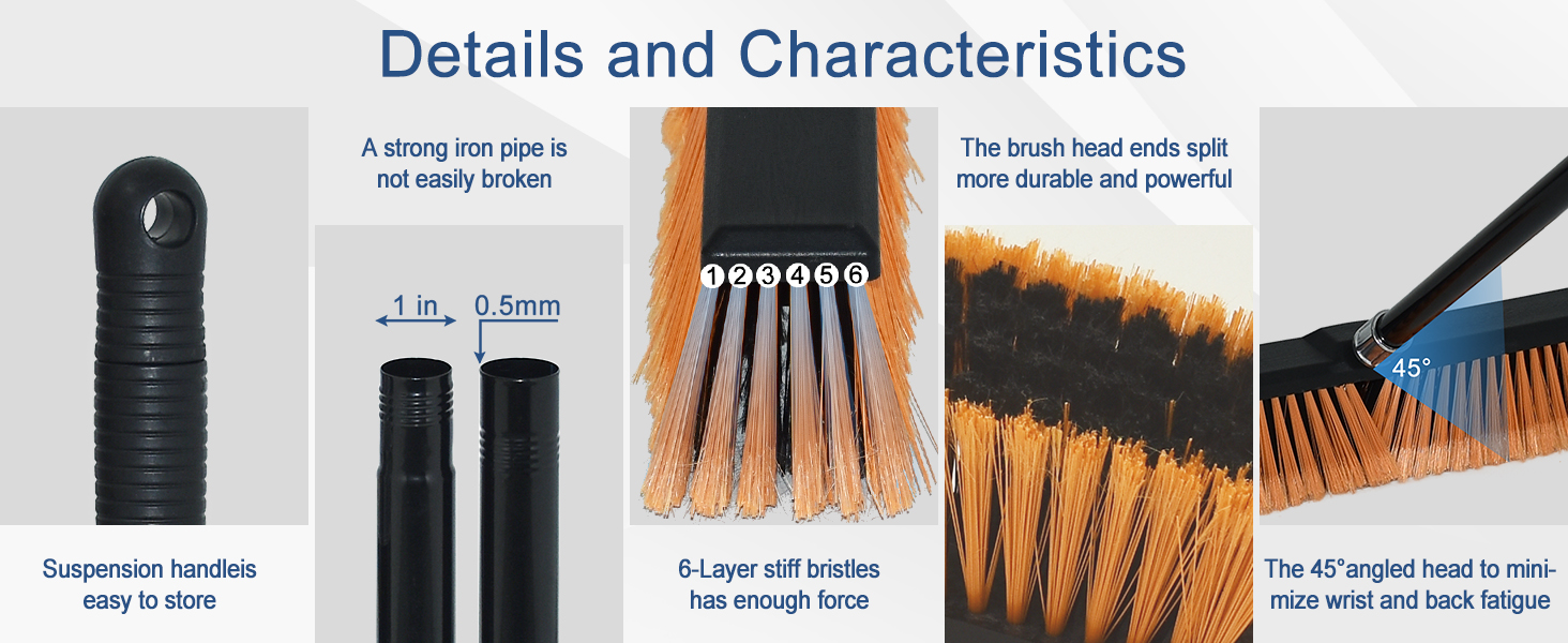• مكنسة الدفع للاستخدام الخارجي شديدة التحمل: مكنسة المتجر مكونة من 6 صفوف من الشعيرات الصلبة وشريط سميك للغاية لكنس الأشياء الثقيلة بسرعة أو كفاءة أمامية، مثل التربة والرمال والثلج والأوراق التي تميل إلى الالتصاق بالأرض، بالإضافة إلى أنها مناسبة للاستخدام في الظروف الرطبة أو الجافة، ولن تتعفن أو تتشوه مثل المكنسة الخشبية.