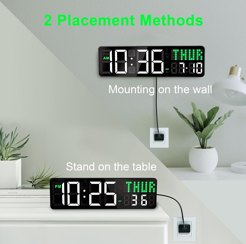 【المزيد من الوظائف الأخرى】 ليست مجرد ساعة حائط رقمية الكل في واحد، فهي مدمجة في التوقيت الصيفي التلقائي والتعتيم التلقائي، كما أنها مؤقت ساعة صالة الألعاب الرياضية للتمرين، مع جهاز التحكم عن بعد يمكنك بسهولة برمجة خطط التمرين الخاصة بك. علاوة على ذلك، مؤقت العد التنازلي المدمج لمدة 999 يومًا للأحداث/المواعيد النهائية/والجداول الزمنية للمشروع، عملي جدًا لإدارة الوقت في غرفة المعيشة والفصول الدراسية والمكتب المنزلي وما إلى ذلك.