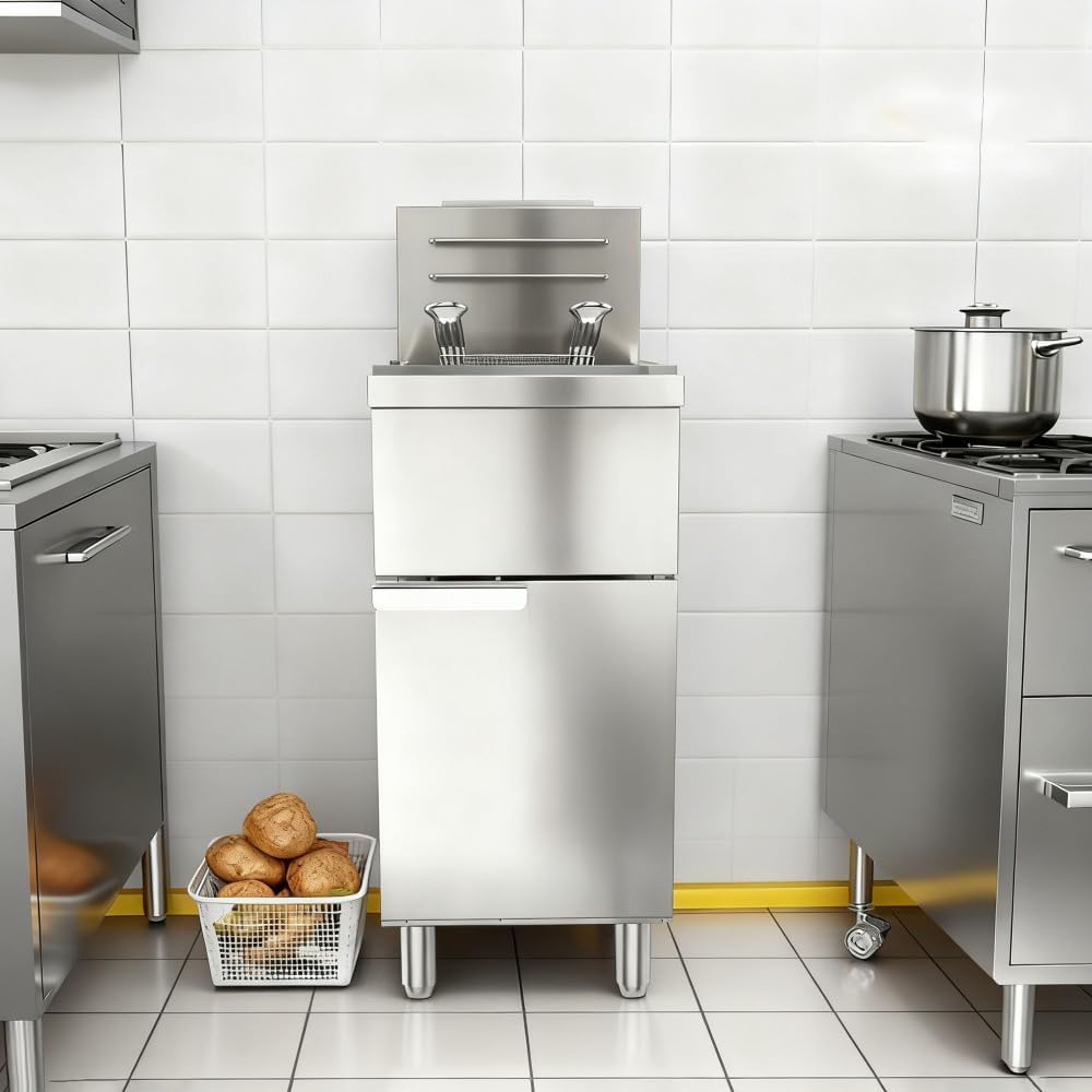 High-Performance Frying System: Powerful gas heating for fast oil temperature rise and quick recovery, ensuring consistent frying results