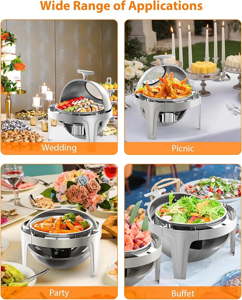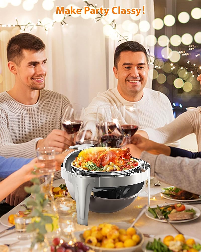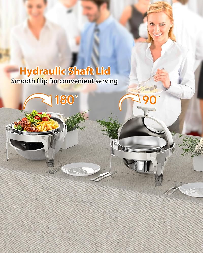 • Large 6.3 Quart Capacity: Designed for weddings, banquets, parties, hotel breakfasts, and more, this round chafing dish meets the demands of large gatherings while adding elegance to your buffet setup.
