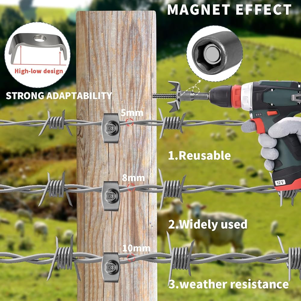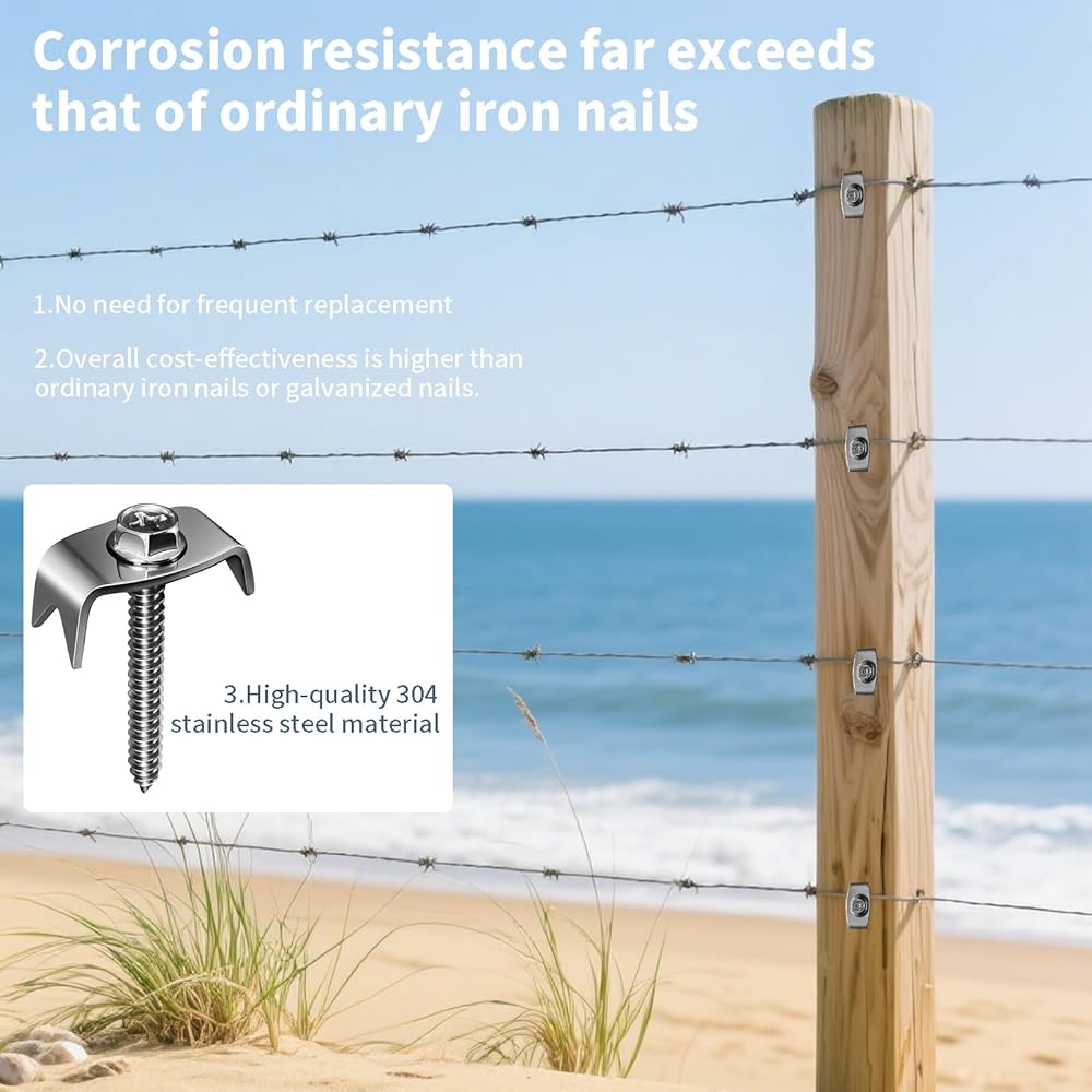 • Reusable Fence Nails: Fence staples for wire fencing are made of 304 stainless steel material, anti-rust and anti-corrosion, easy to install or remove with a power drill, allow repositioning