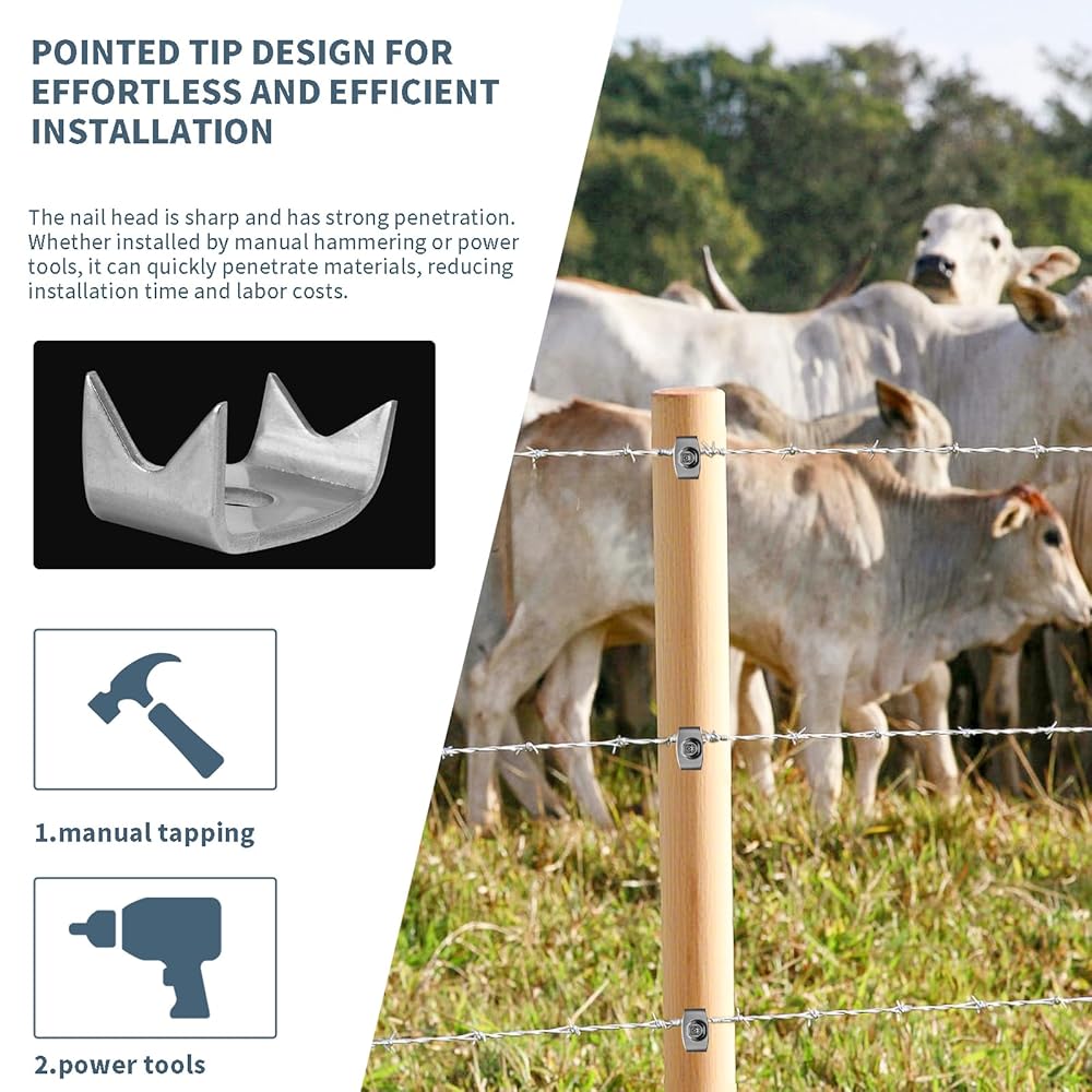 • Strong and Secure Hold:These wire fence fasteners have 2 teeth on each side that grip firmly into the wood. They are easy to install and hold very securely