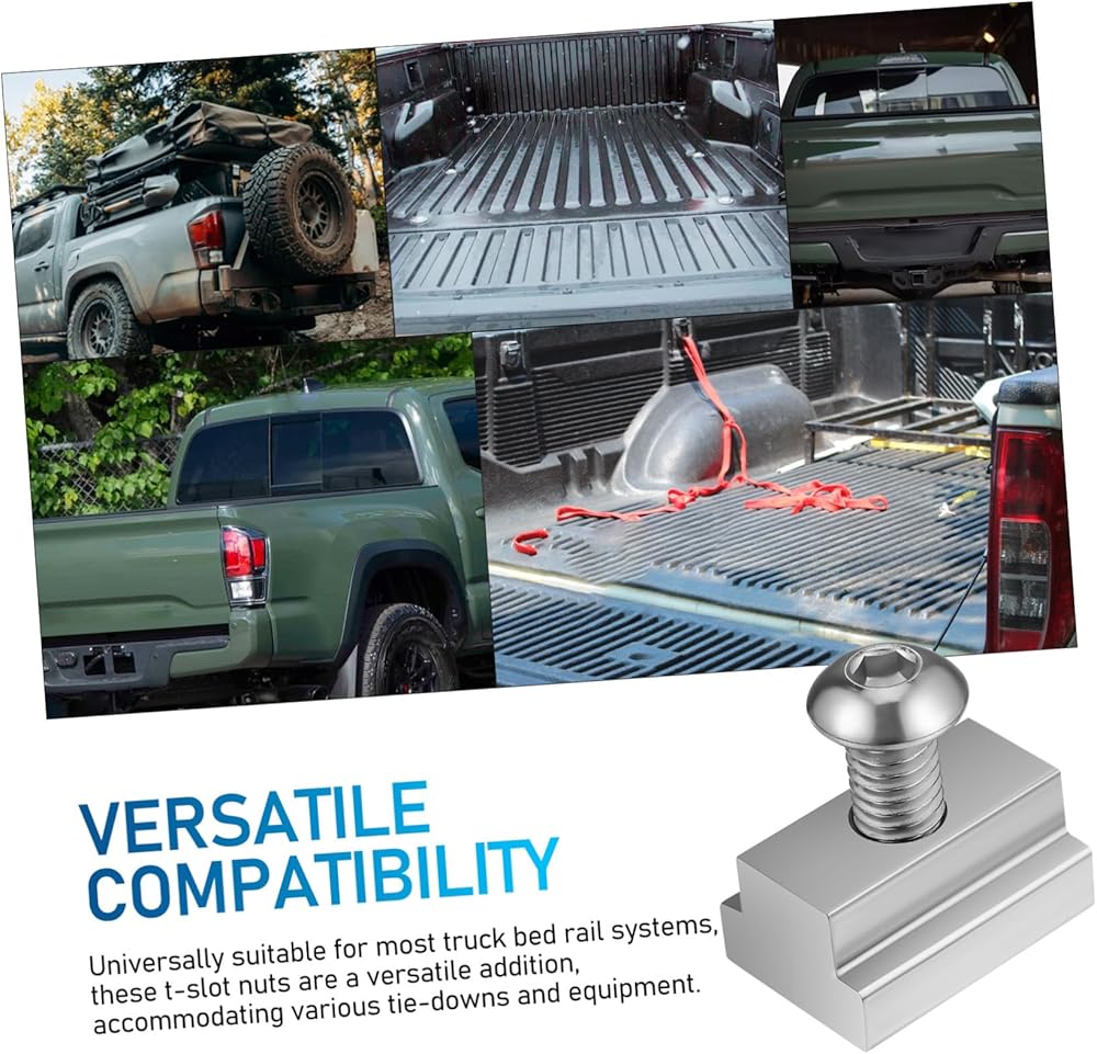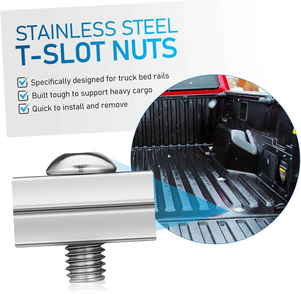 • ملاءمة دقيقة: مصممة للانزلاق بسلاسة في الأخاديد ذات الفتحة على شكل حرف T الموجودة في قضبان سرير الشاحنة، وتوفر وصلة أنيقة وموثوقة لتحقيق أقصى قدر من الأمان، وصواميل الشاحنة، وصواميل المسمار