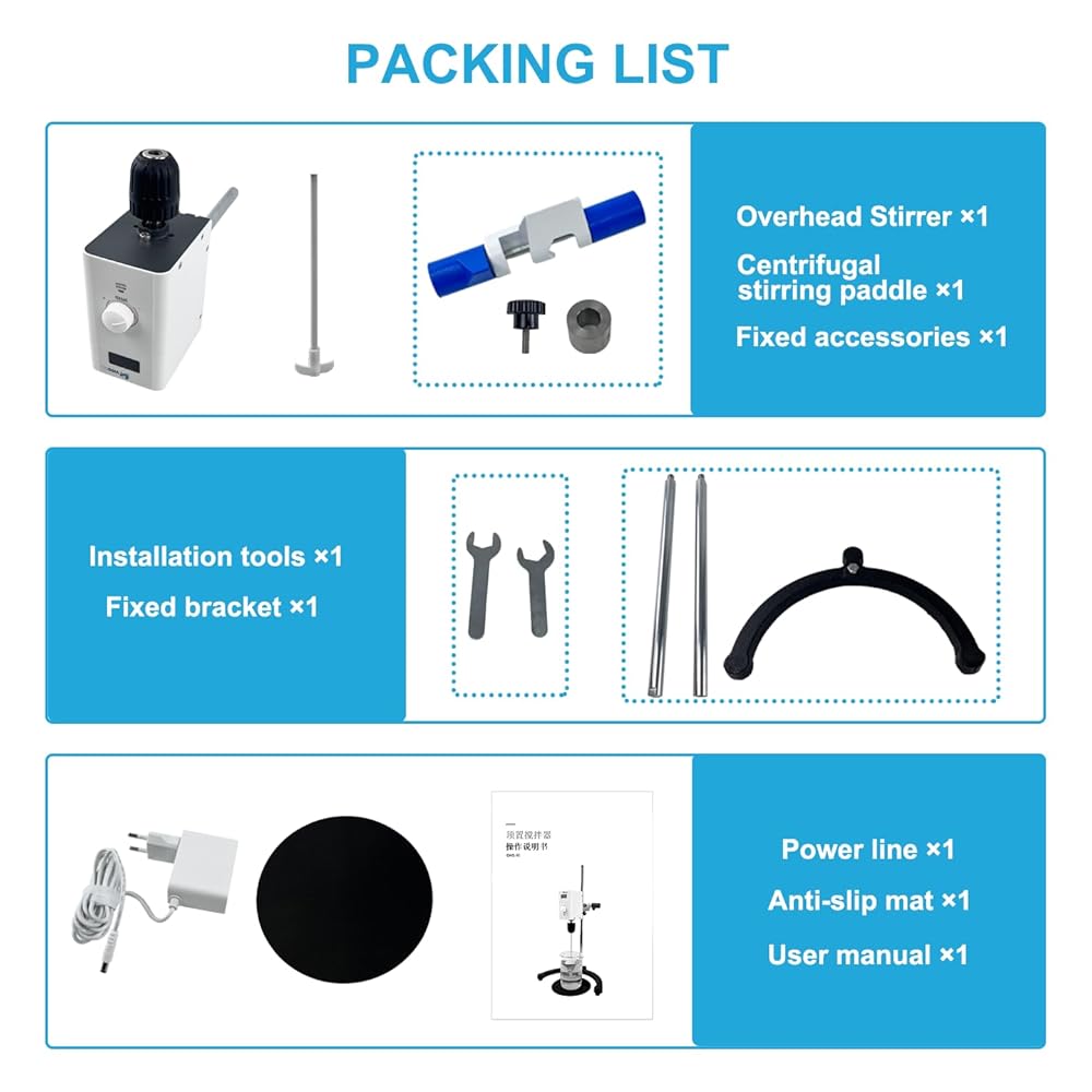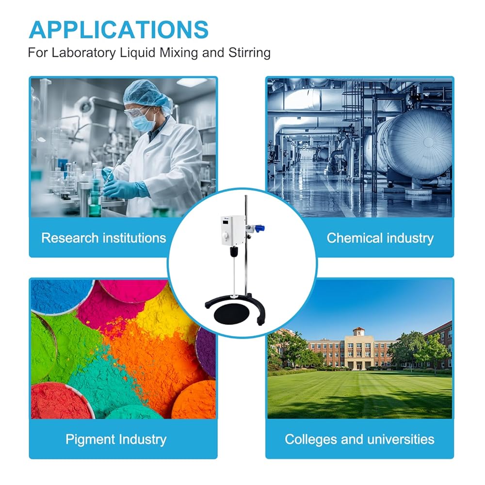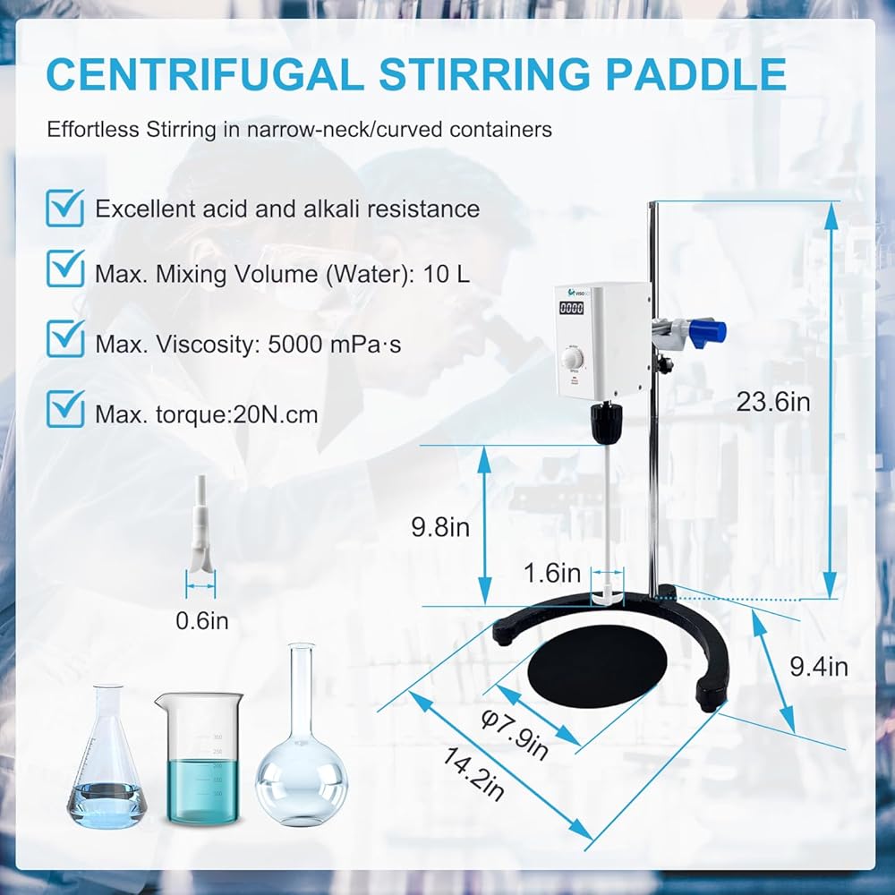 VISOSCI LED digital overhead stirrer is with simple operation, strong power, stable stirring and is suitable for mixing samples in various viscosity. lt is widely used for dissolution, dispersion and emulsification in chemical synthesis, drug synthesis, physical and chemical analysis, chemical research and development, food and beverage, food and drug testing, beauty industry, handmade, cosmetics, dyes, coatings paints, glue adhesives, plastics, polymers and other fields.