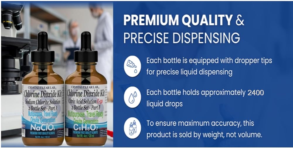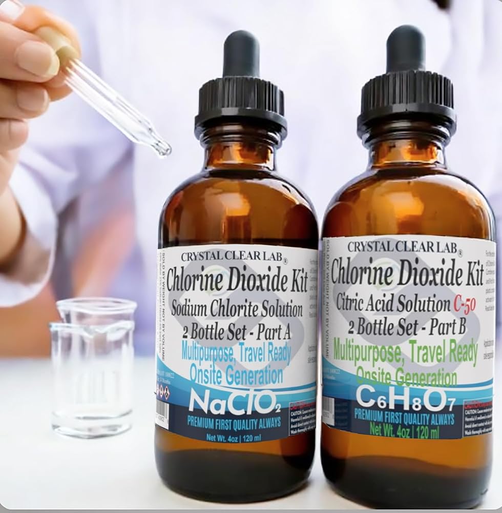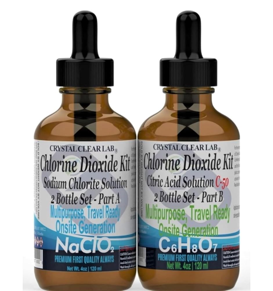 مجموعة محلول CDS ثاني أكسيد الكلور مع حمض الستريك 8 أونصة زجاجية 3000 جزء في المليون ClO2