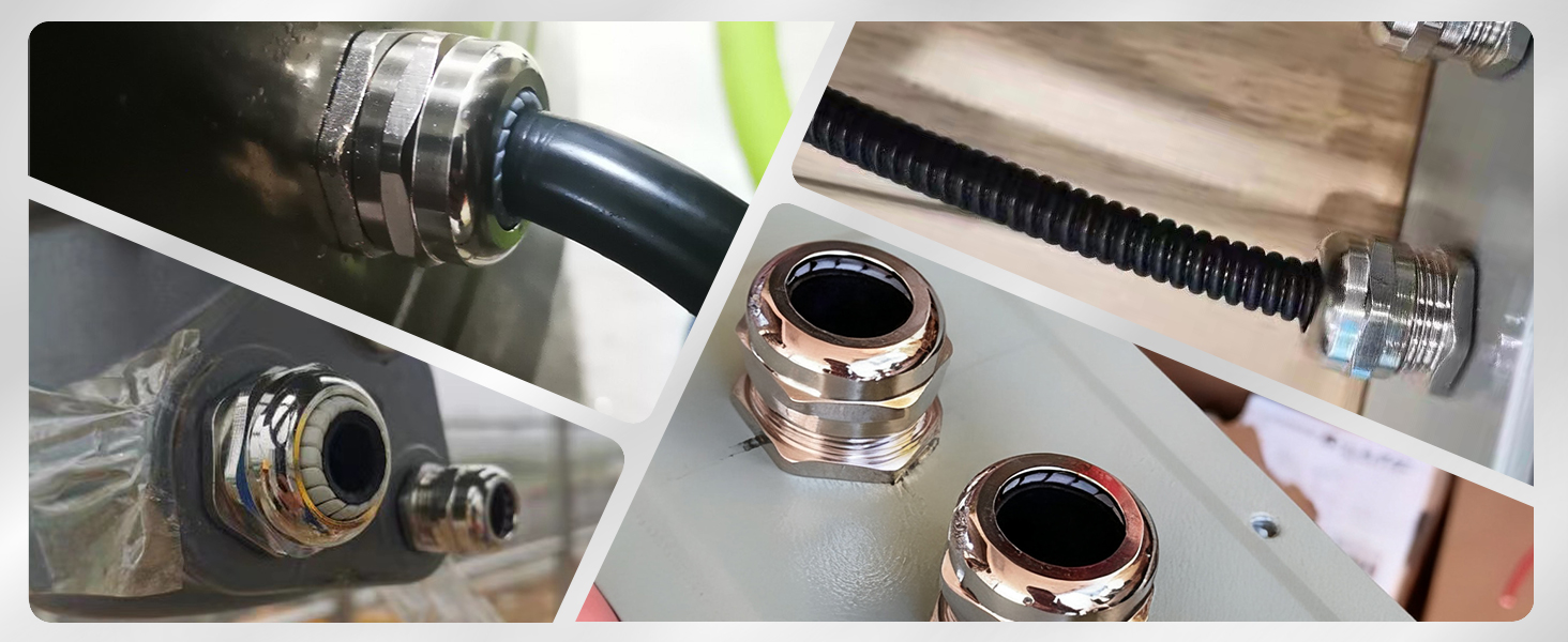 - الاستخدام: تُستخدم موصلات الكابلات لحماية أحزمة الأسلاك في صناديق التوصيل الكهربائية، والخزائن الكهربائية، والمرفقات الكهربائية