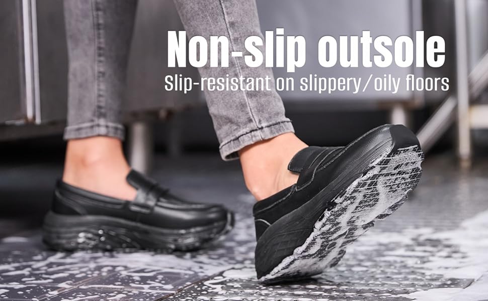 نعل خارجي مانع للانزلاق: تتميز أحذية العمل النسائية المضادة للانزلاق هذه بنعل خارجي خاص مقاوم للانزلاق، مما يوفر قبضة ممتازة ويضمن لك عدم القلق بشأن الانزلاق على مختلف الأرضيات الزلقة والدهنية. بالنسبة لأولئك الذين يعملون في المطابخ أو المطاعم أو صناعة الخدمات الغذائية، فإن هذه الأحذية عملية بشكل خاص.