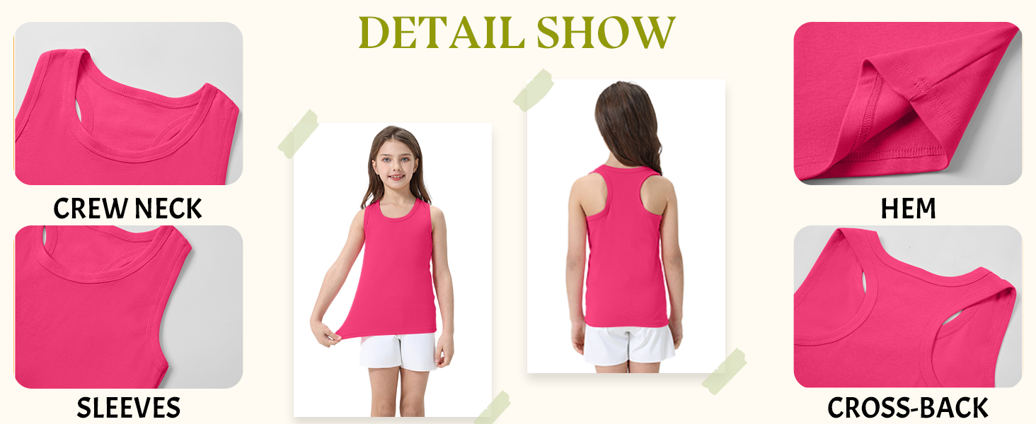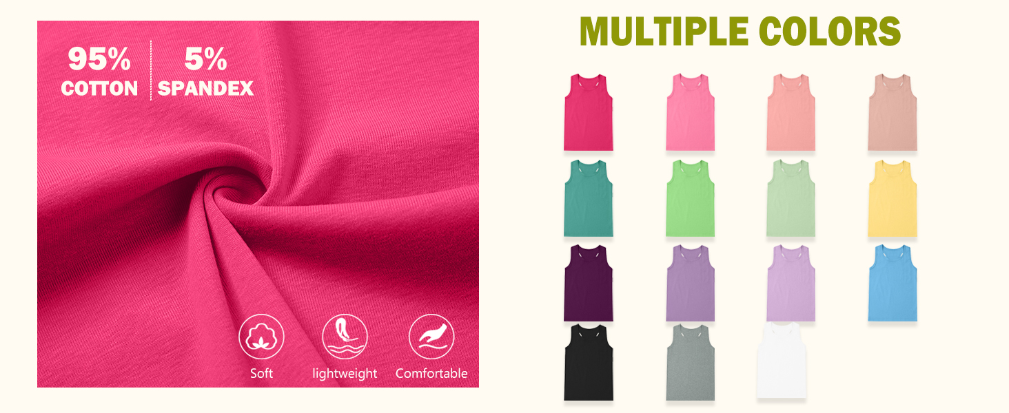 قمصان بدون أكمام للفتيات الناعمة: القمصان بدون أكمام للفتيات مصنوعة من القطن الفاخر بنسبة 95% و5% ألياف لدنة، نسيج قطني عالي الجودة وناعم وجيد التهوية، مما يضمن راحة الأطفال طوال اليوم للارتداء في الأماكن المغلقة أو الهواء الطلق.