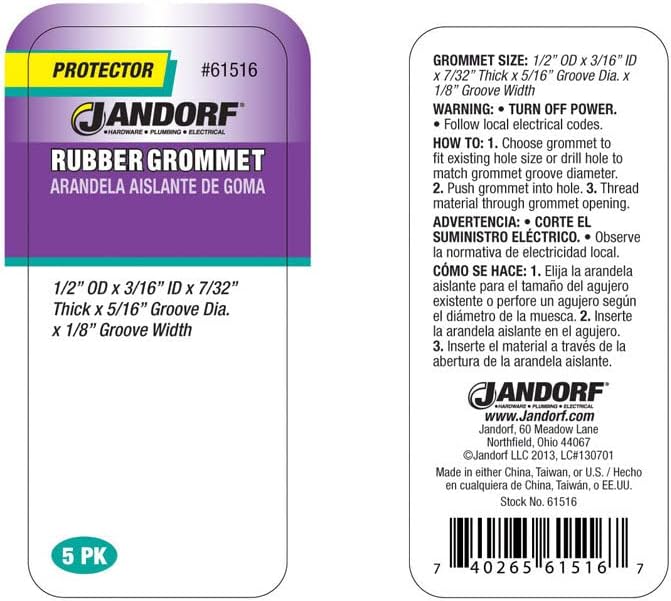 Jandorf Specialty Hardw Grommet Rubber 1/2 Od 61516