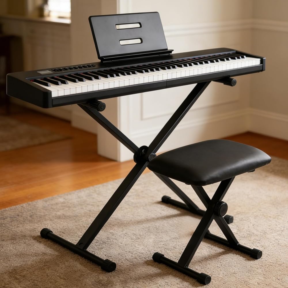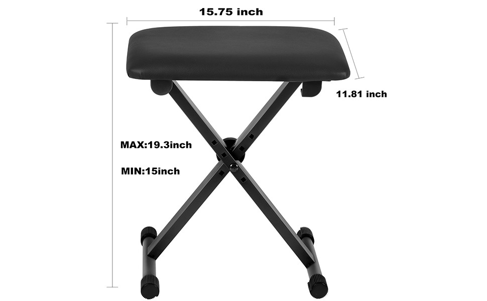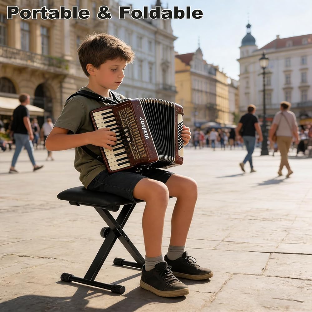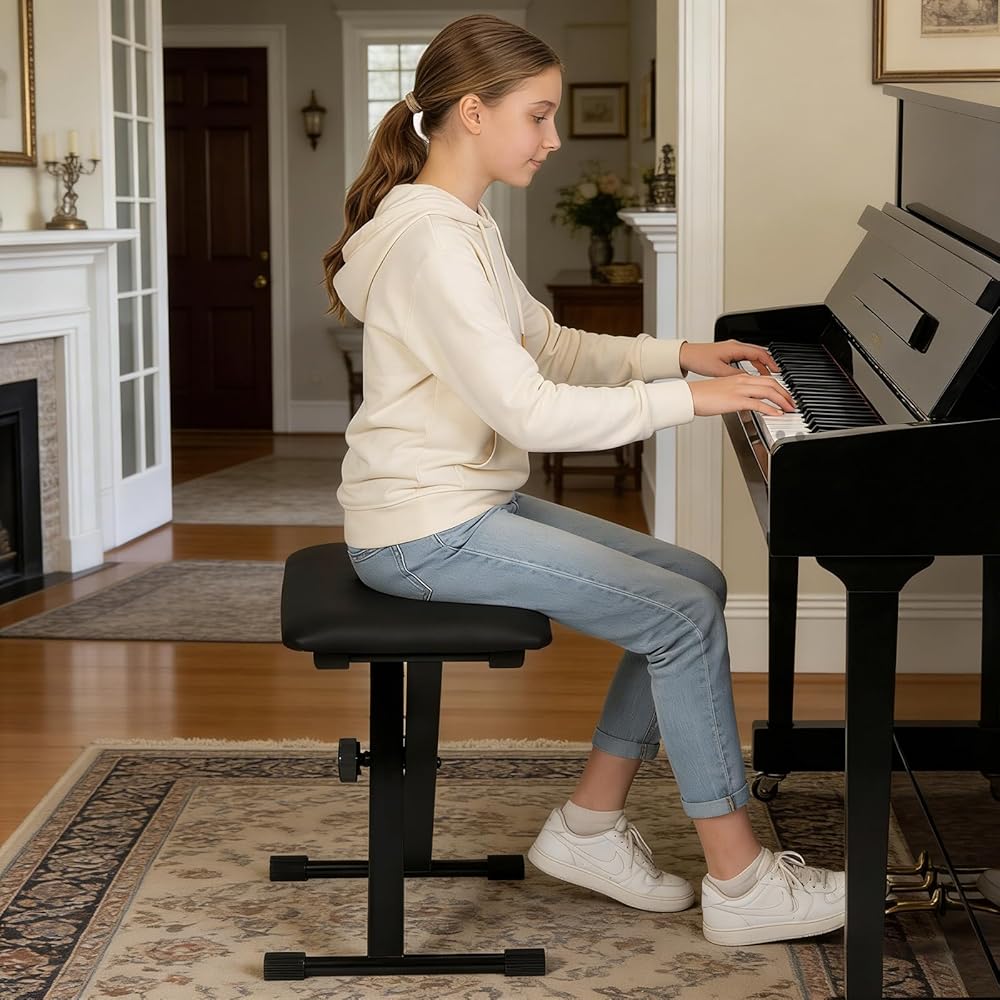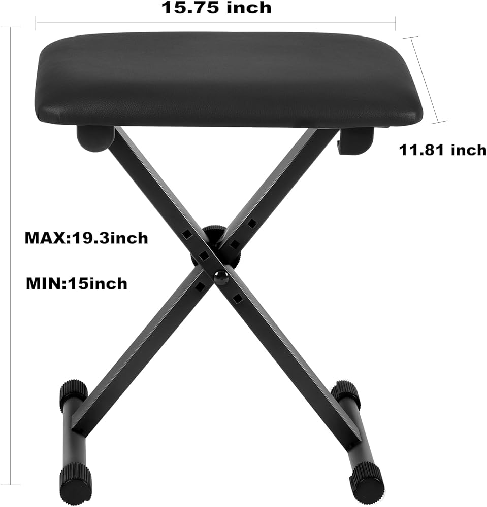 مقعد لوحة مفاتيح احترافي، ارتفاع دقيق للأداء، مصمم خصيصًا للاعبي البيانو ولوحة المفاتيح والأكورديون. يتميز بإمكانية تعديل الارتفاع بأربعة أوضاع من 15 إلى 19.3 بوصة لتتناسب مع وضعية الجلوس المثالية للموسيقيين ذوي الأطوال المختلفة أو للآلات المختلفة، مما يضمن راحة العزف المثالية