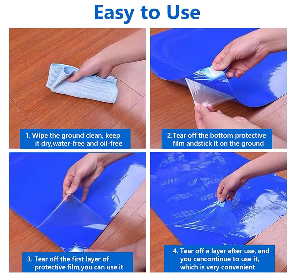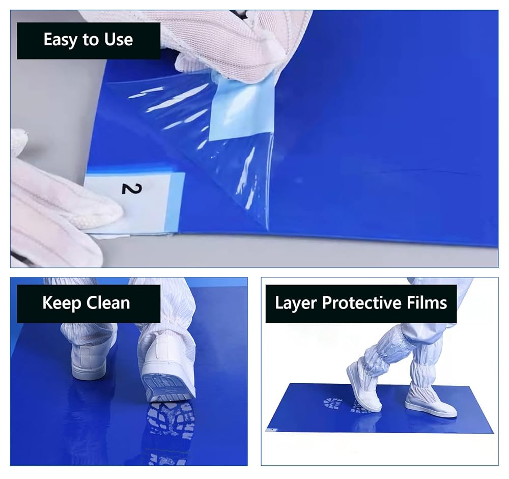 حصائر لاصقة، مقاس 60.96 سم × 91.44 سم، 300 ورقة حصيرة لاصقة لاصقة لزجة حصير لغرف البناء النظيفة لمختبر المنزل في المصنع (أزرق)