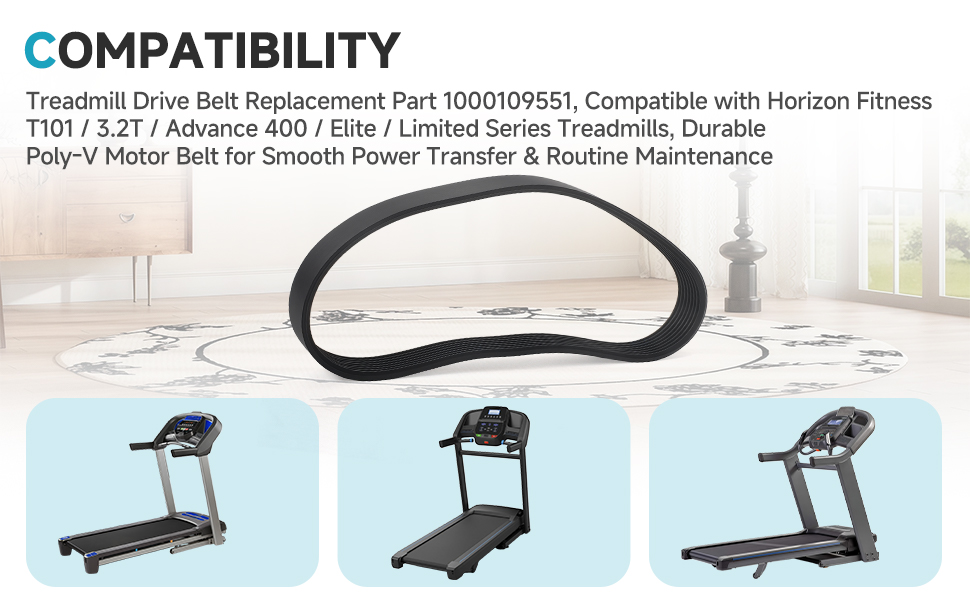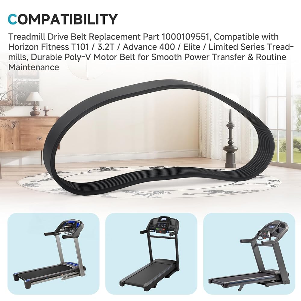 [التوافق] جزء بديل لحزام محرك جهاز المشي 1000109551، متوافق مع أجهزة المشي Horizon Fitness T101 / 3.2T / Advance 400 / Elite / Limited Series، حزام محرك بولي V متين لنقل الطاقة بسلاسة والصيانة الروتينية