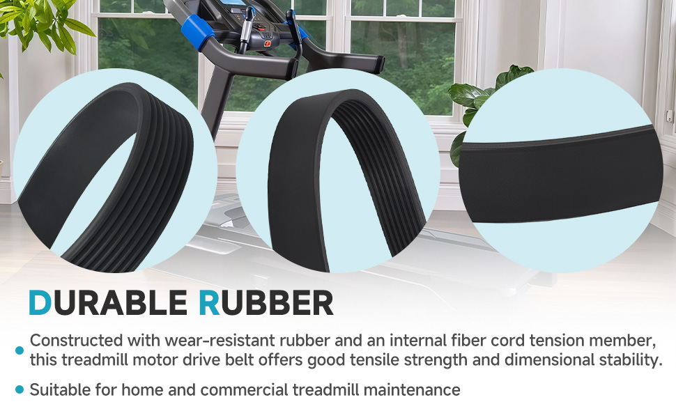 [مطاط متين] مصنوع من مطاط مقاوم للاهتراء وعضو شد سلك من الألياف الداخلية، يوفر حزام محرك جهاز المشي هذا قوة شد جيدة وثبات الأبعاد. مناسبة لصيانة جهاز المشي المنزلي والتجاري