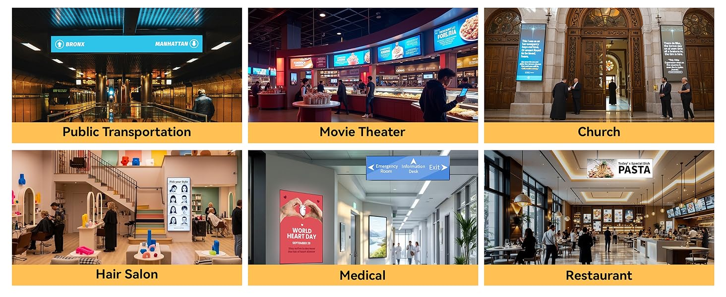 تشغيل شاشة مقسمة ذكية للرسائل الديناميكية: يتيح لك دعم عرض المحتوى ثنائي المنطقة عرض الفيديو والعروض الترويجية جنبًا إلى جنب - وهو مثالي لإشراك العملاء في الردهات أو مناطق الخروج أو غرف الانتظار. ثبت أنه يعزز التفاعل مع المحتوى بنسبة تصل إلى 70%.