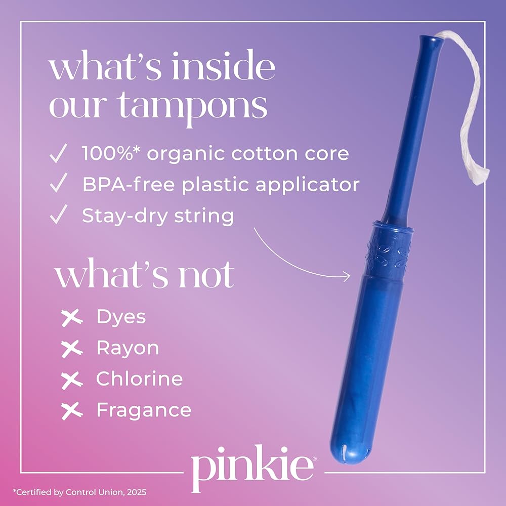 امتصاص طوال اليوم، بشكل طبيعي: تتميز سدادات بينكي بحشوة من القطن العضوي بنسبة 100% تتمدد لتناسب جسمك وتساعد على الحماية من التسربات لمدة تصل إلى 8 ساعات. مريحة وموثوقة للمراهقين والبالغين على حد سواء