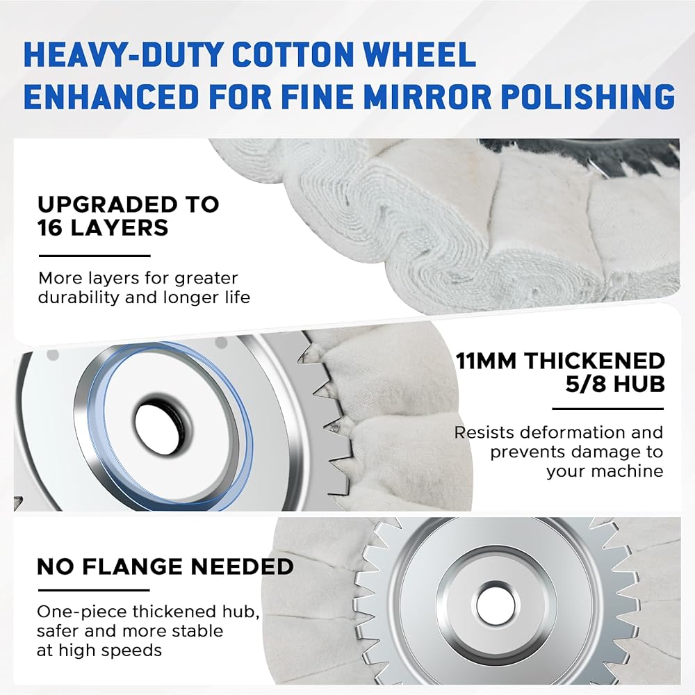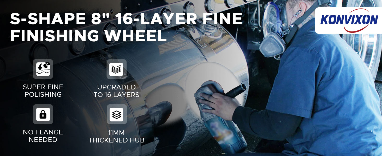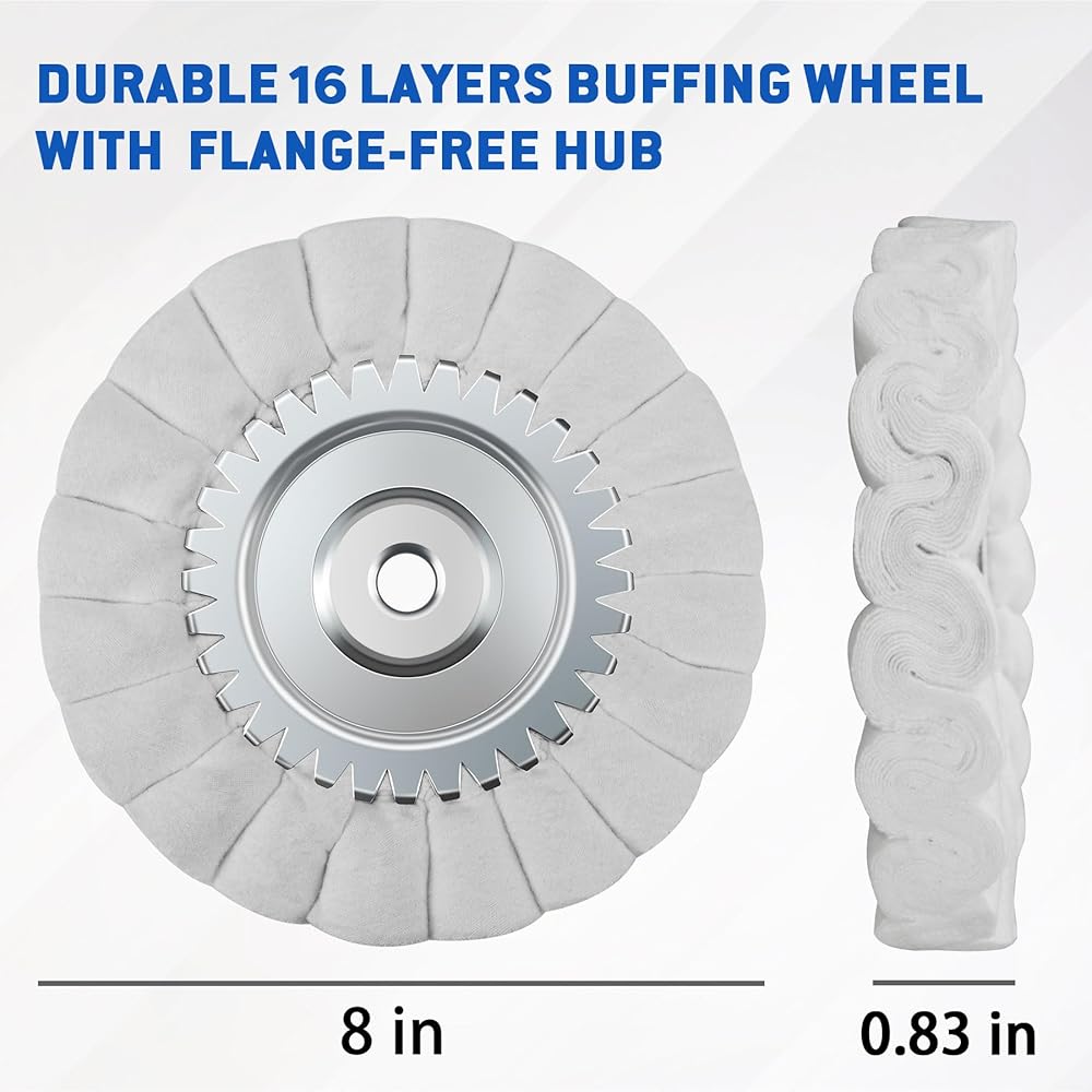 【هيكل مكون من 16 طبقة مقاس 8 بوصات】يعمل البناء المكون من 16 طبقة كثيف للغاية على تعزيز المتانة وطول العمر، والحفاظ على الأداء المتسق حتى في ظل مهام التلميع شديدة التحمل مثل عجلات الشاحنات وخزانات الوقود والأسطح المعدنية الكبيرة.