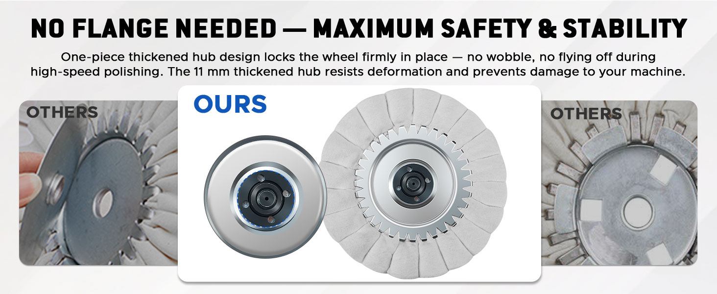 【ترقية هيكلية على شكل حرف S】يضمن التصميم المتقدم على شكل حرف S طبقات محكمة ومدمجة تقاوم التصفيح، وتزيد من الصلابة، وتوفر تلميع أسرع وأكثر كفاءة على الألومنيوم والفولاذ المقاوم للصدأ والمعادن الأخرى.