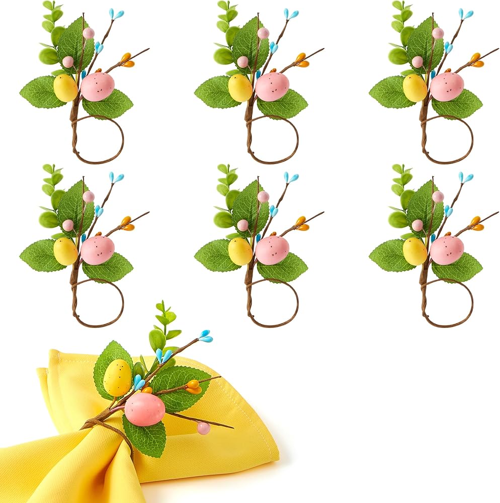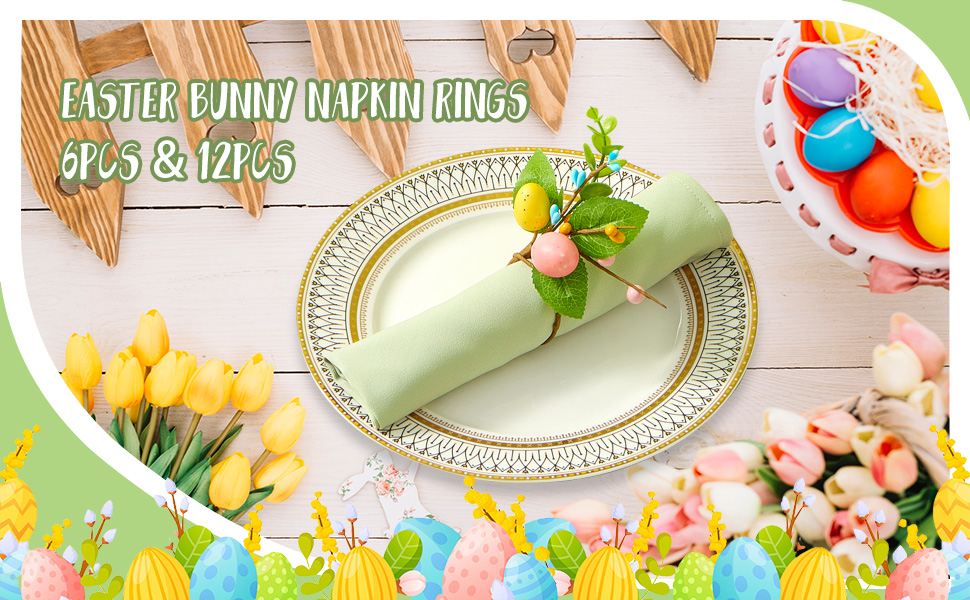 【استخدامات متعددة】: تم تصميم حلقات مناديل عيد الفصح الربيعية هذه في المقام الأول لتزيين المناديل. يمكن استخدامها أيضًا كزينة للطاولة الاحتفالية أو لتزيين أكياس الحلوى أو السلال أو زجاجات المشروبات خلال احتفالات عيد الفصح. متينة ومقاومة للتلف، فهي خيار متين وساحر لتجمعات العطلات الخاصة بك.