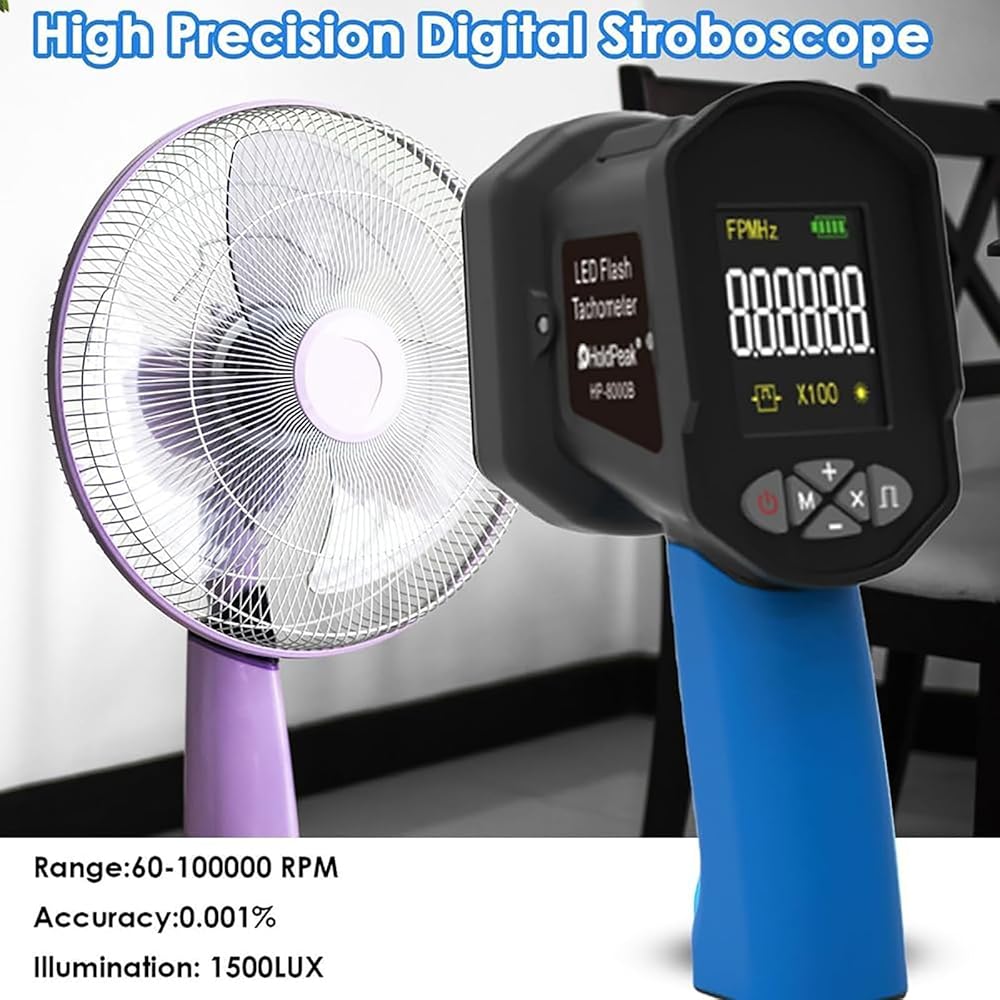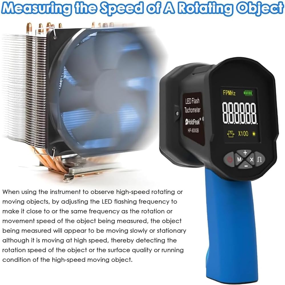 【Adjustable Strobe & Clear Display】Easily modify flash rates via intuitive controls to match needs. The bright LCD screen ensures clear, real-time RPM/FPM value display during testing of motors, fans, tires, and more.