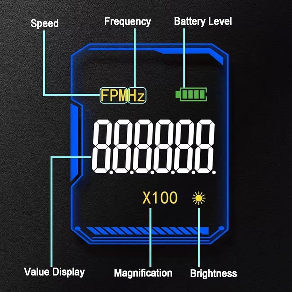 【Non-Contact Tachometer】This tachometer is designed for measuring the rotation speed or vibration frequency of rotating equipment. You can easily check the speed of an object without physically contacting or stopping the object. High accuracy: 0.001%, a wider measurement range of 60-99999 RPM can meet greater needs.