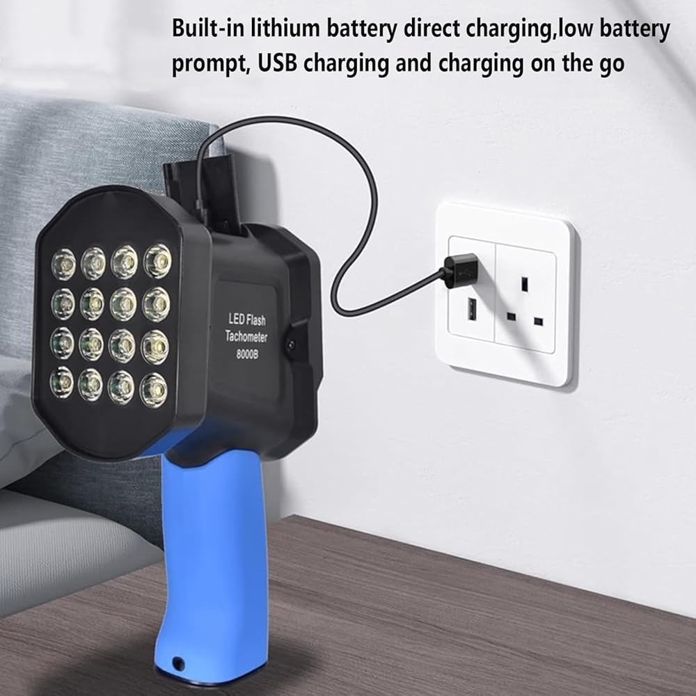 【High Brightness Flash LED】Compared with ordinary tachometers, this smart tachometer adopts 1500 lux LED, 16-bead matrix lamp holder with adjustable brightness, which can achieve a longer lighting range, provide clear images, accurate positioning and faster measurement.