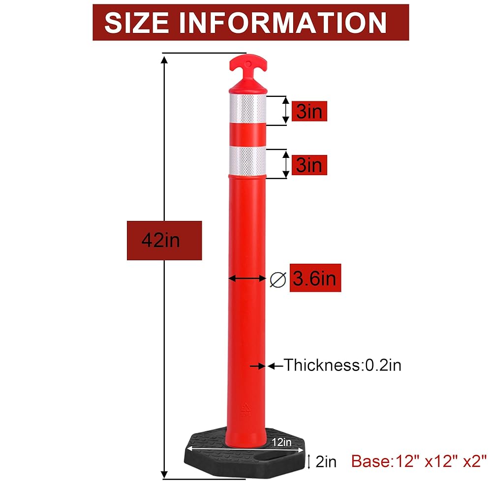 ارتفاع 42 بوصة مع قاعدة مرجحة 12 بوصة × 12 بوصة: احصل على الرؤية والثبات من خلال المخاريط الطويلة مقاس 42 بوصة. توفر القاعدة المطاطية شديدة التحمل مقاس 12 بوصة × 12 بوصة مركزًا منخفضًا للجاذبية لمنع الانقلاب في الرياح أو المناطق المزدحمة
