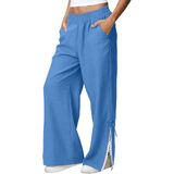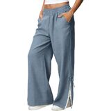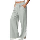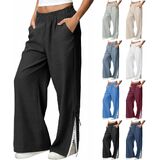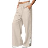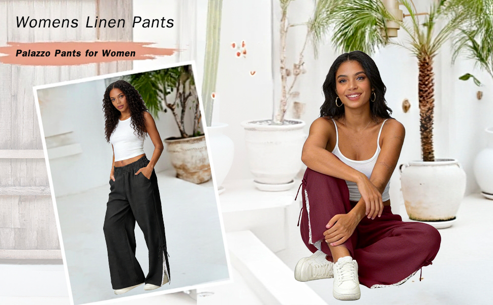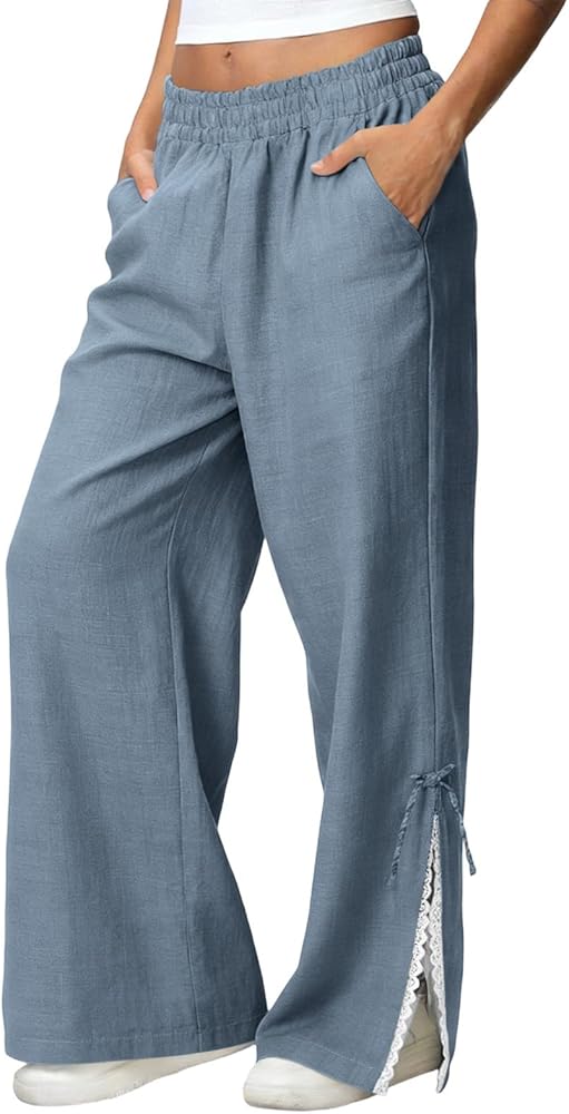 التصميم: سراويل كتان للنساء، سراويل عصرية، طراز فضفاض، سراويل واسعة الساق من الدانتيل، ملابس صيفية كاجوال، مع جيبين، لون ثابت، مناسب لقضاء عطلة الصيف، يجعلك تبدو أنيقًا للغاية.