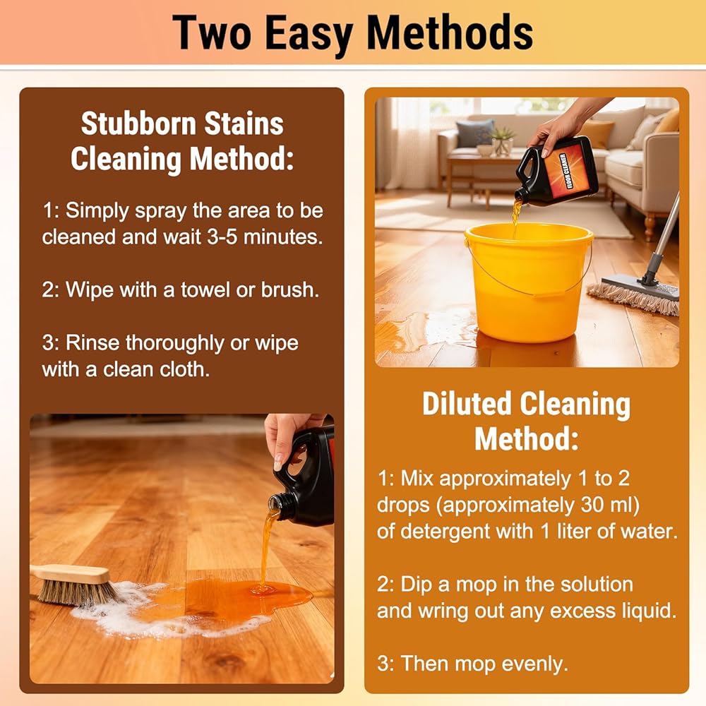 • Two Simple Ways To Use It: For Stubborn Stains: Simply Spray It On The Area To Be Cleaned, Wait 3-5 Minutes, Wipe With A Towel Or Brush, And Then Rinse Thoroughly. For Diluted Use: Mix Approximately 1 To 2 Drops (About 30 Ml) Of Cleaner With 1 Liter Of Water. For Mopping: Dip The Mop Into The Solution, Wring Out Any Excess Liquid, And Mop The Floor Evenly. Easy To Use, It'S The Perfect Choice For Your Daily Cleaning Needs