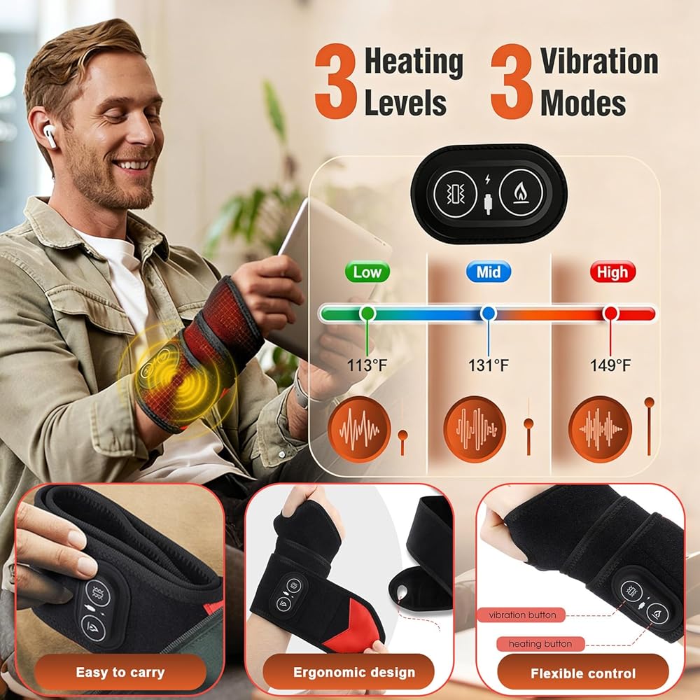 【لفافة معصم ساخنة مع اهتزاز ثلاثي المستويات وحرارة قابلة للتعديل】 تم تصميمها لتكون لفافة معصم ساخنة مع تدليك بالاهتزاز، يوفر مدلك المعصم هذا 3 أوضاع اهتزاز (منخفضة / متوسطة / عالية) و3 مستويات حرارة قابلة للتعديل (122 درجة فهرنهايت، 140 درجة فهرنهايت، 158 درجة فهرنهايت). يمكن استخدام إضاءة الضوء الأحمر والدفء والاهتزاز معًا أو بشكل منفصل لتتناسب مع تفضيلات الراحة المختلفة أثناء الراحة أو فترات راحة العمل أو وقت الاسترخاء.