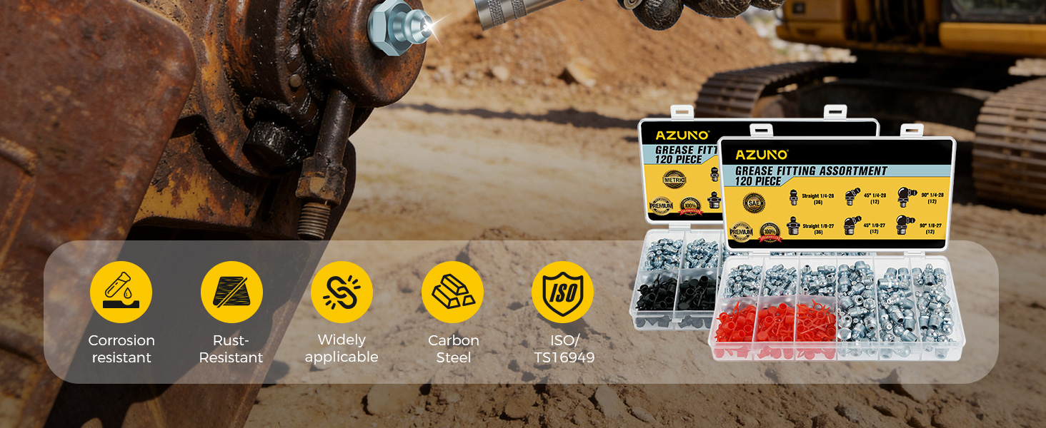 البناء ليدوم طويلاً: تركيبات الشحوم Zerk مصنوعة من الفولاذ المطلي بالزنك عالي القوة لمزيد من القوة ومقاومة الصدأ. يلبي ويتجاوز شهادة ISO/TS16949 ومعيار الصناعة الذي تم اختباره لمقاومة التآكل لمدة 48 ساعة.