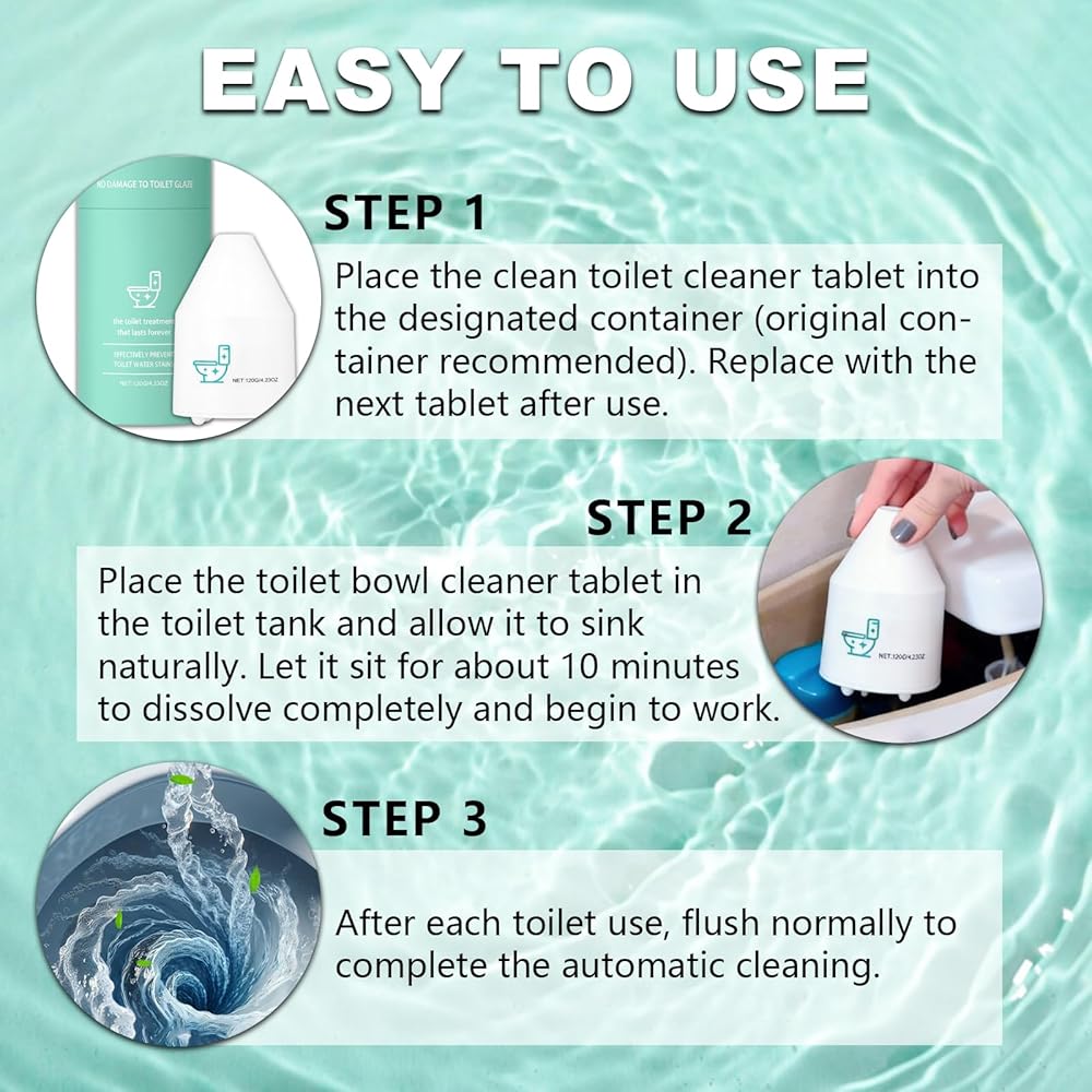 ②Place the container with the cleaning tablet into the toilet tank, allowing the clean toilet cleaner to sink naturally. Let it sit for approximately 10 minutes until the clean toilet cleaner is completely dissolved and begins to work.