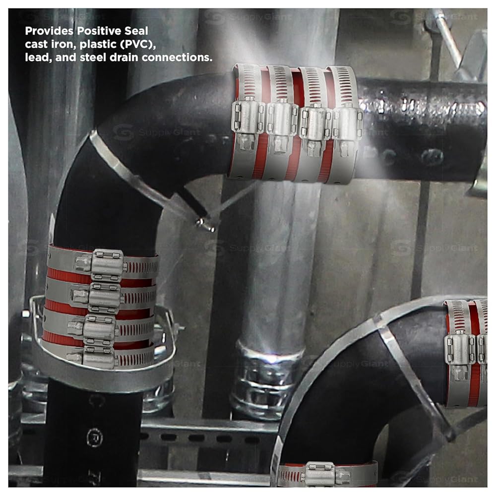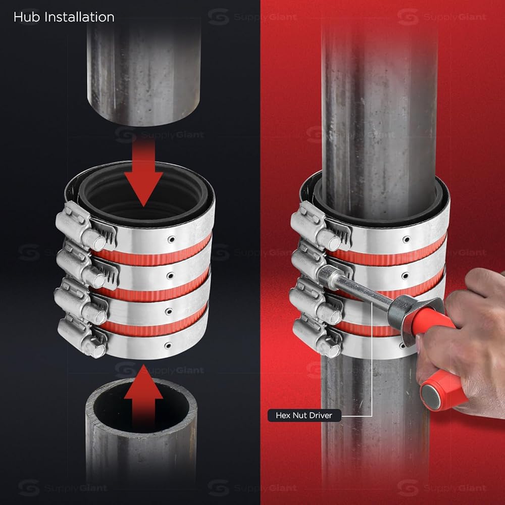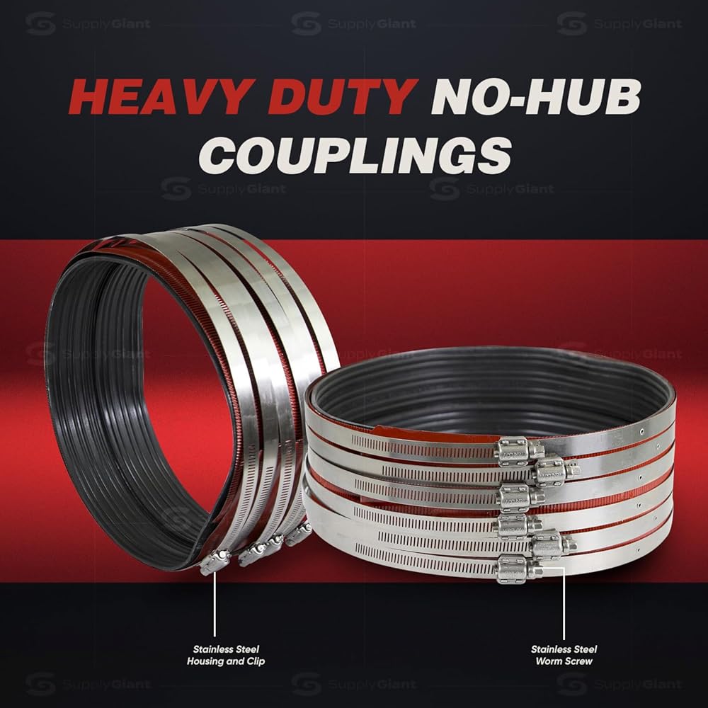 12-Inch Pipe Compatibility – Engineered to securely join 12-inch no-hub cast iron soil pipes and fittings, providing a durable, leak-resistant connection for residential, commercial, and industrial plumbing applications