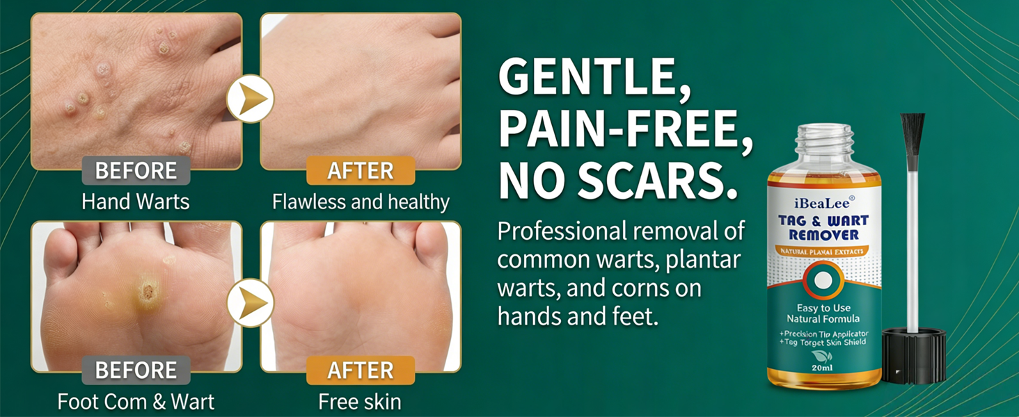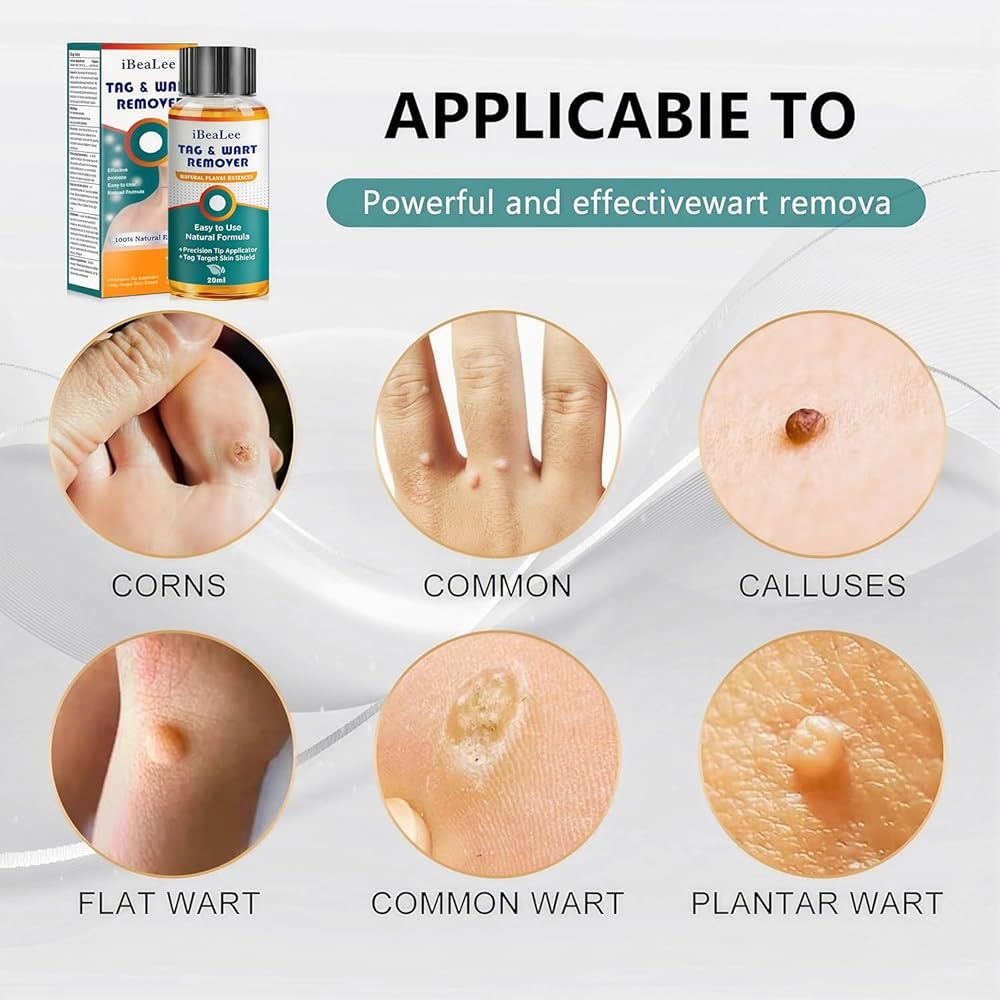 حل فعال لإزالة الثآليل: مصمم خصيصًا للثآليل الأخمصية والذرة والثآليل الشائعة والثآليل المسطحة ومسامير القدم والثآليل على أظافر القدمين والأظافر. يساعد هذا المنتج على تقليل وإزالة معظم أنواع الثآليل، مما يدعم صحة البشرة بمرور الوقت