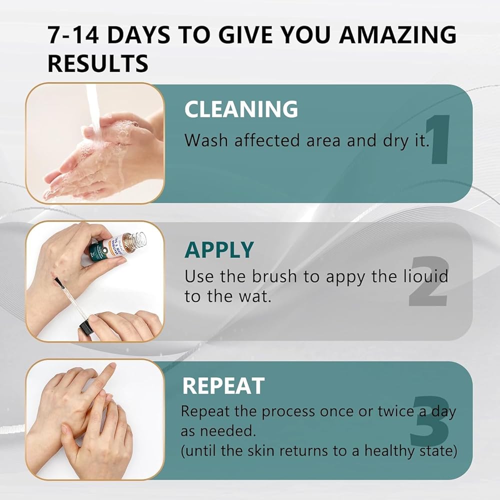 عملية تطبيق مريحة: تتيح لك الفرشاة المرفقة وضع السائل مباشرة على الثؤلول بسهولة. بمجرد تطبيقها، تجف التركيبة بسرعة وتعمل على اختراق المنطقة المستهدفة. قد يُظهر الاستخدام المستمر تحسينات واضحة خلال أسبوعين، اعتمادًا على الفرد
