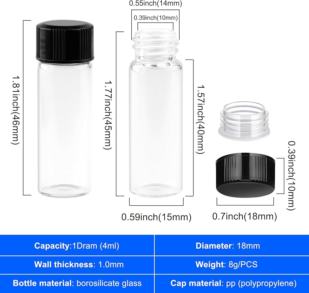 4ml Small Clear Glass Vials with Screw Caps and PE pad