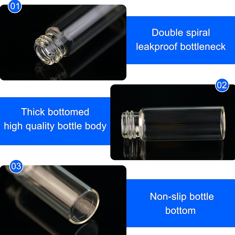 Leak Proof - Glass vials with screw caps with leak-proof caps, The cap comes with a PE pad, which combined with the threaded spout, better prevents the liquid from leaking or evaporating.